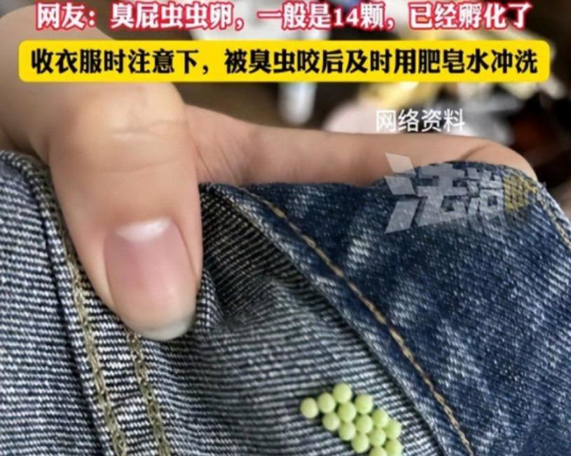 5月31日四川,一女子起床穿衣服,结果,却总感觉扣不舒服。她将衣服一把扯开,竟然在上面发现了14个球状物体。 麻烦各位读者点一下右上角的“关注”,留下您的精彩评论与大家一同探讨!感谢您的强烈支持! “这内衣今天怎么这么别扭!” 四川绵阳的陈女士皱着眉头摸了摸后背的内衣扣带,总觉得有东西硌着皮肤。 她脱下翻看,眼前的一幕让她头皮发麻。 赫然看到14颗灰绿色小球整整齐齐粘在夹层里,每颗约芝麻大小,凑近一闻还有股酸臭味。 事情发生在5月31日,陈女士刚把阳台晾干的衣服穿上身就感到刺痒。 起初她以为是洗衣凝珠残留,直到发现这些“小颗粒”竟会蠕动。 物业检查后,在她阳台堆放的快递箱底找到更多同类虫卵和几只死飞蛾。 社区疾控人员鉴定为衣蛾卵,专啃棉、丝等天然纤维,尤其偏爱潮湿杂物多的环境。 但此事发到网上后,有人晒出同款经历,称在防晒衣上发现过类似虫卵。 也有人反驳:“这明明是臭屁虫卵,一次产14颗是它们的‘强迫症’。” 有网友看后直呼“收衣服成了拆盲盒,不抖三下不敢穿”。 有人崩溃回忆:“去年收牛仔裤抖出一窝虫,我连衣架都扔了!” 但也有网友调侃虫卵“排队比军训还整齐”,甚至有人研究起虫子的“审美偏好”。 实际上遇到这样的事情,最好的就是用“花椒水喷衣架,阳台种薄荷”。 网友称气味驱虫亲测有效,若是家中有类似问题的,不妨一试。 还有网友建议发现虫卵用密封袋装好冻一夜,避免手挤引发皮肤红肿。 有人提醒贴身衣物正晒防粉尘,但化纤、针织类反晒才能防褪色。 在四川、重庆等湿度高的西南地区,衣蛾常见于杂物堆积的阳台,其卵散落附着衣物纤维。 而广东、福建等地网友晒出的“14颗绿色整齐虫卵”,实为臭屁虫所产,常因阳台靠近果树或绿化带被“误选”为产床。 专家解释,臭屁虫卵汁液含神经毒素,徒手抠破可能引发接触性皮炎。 但衣物上的卵因环境不适极少孵化成虫。 而陈女士的棉质衣服、阳台堆积的纸箱和旧书本,为衣蛾提供了潮湿温床。 黄昏至清晨的户外晾晒,恰是昆虫产卵高峰时段。 不管是晒衣服,还是收衣服,多看一看不是什么坏事,也不耽误时间,没有什么比自己的健康和安全最重要。 信息来源:法治进行时