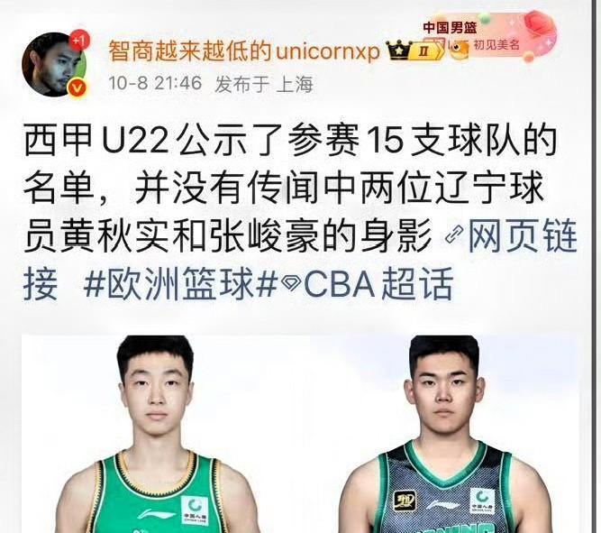 一切都是最好的安排!辽篮小将张峻豪和黄秋实的名字暂时没能出现在西甲U22名单中,不代表注册已经截止,我认为是签证问题,杨鸣曾经和两位小将聚餐,后发文:塞翁失马焉知非福,希望他们用更强的球场表现证明一切;说明俱乐部已经有新安排,新部署,没放弃,禁赛没准是坏事变好事一次蜕变,还是要相信俱乐部操作会有更多惊喜,张峻豪黄秋实不存在无球可打