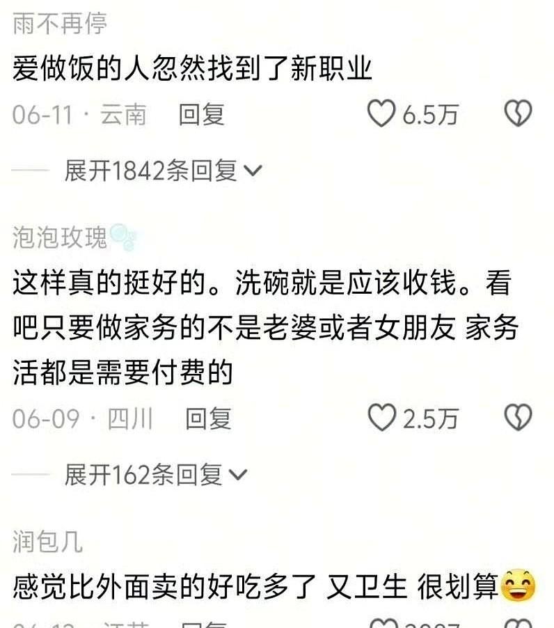 工资不涨,锅铲能涨 小林上午给公司做20份低脂午餐,下午去家庭炖月子汤,夜里再赶一场朋友聚会烤串,一天跑三家,净落800。 她没店没库存,客户把菜买好,她只带刀和锅,油钱都不掏。 平台抽15%,她仍剩85%,比开店交房租省一大截。 她把做菜视频发在小红书,一条爆款能吸来几十个本地订单。 有人找她学,她就开线上课,一份课卖99,夜里睡觉也在进账。 我看到的是:手艺成了新存折。 把私人厨师写进新职业名单,还给培训补贴,就是在告诉普通人,只要肯练锅铲,不用等老板加薪,也能自己给自己发工资。 想试的人别光眼红,先去把健康证和营养师证拿到手,再拍三条真材实料的做菜视频,订单自然会爬上门。 锅铲握得稳,钱包就稳。