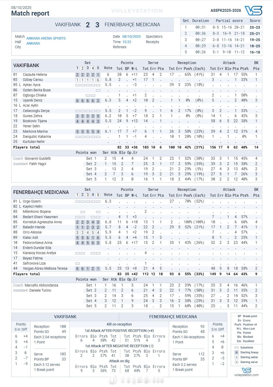 【土耳其超级杯费内3-2大逆转瓦基弗成功卫冕 巴尔加斯蝉联MVP】国际排坛战报速递 10月8日安卡拉,土耳其女排超级杯,费内巴切在两局落后的情况下上演大逆转,以3-2(23-25/21-25/25-19/25-18/18-16)险胜瓦基弗银行,成功卫冕的同时第六次登顶。巴尔加斯25分蝉联MVP,费多罗夫采娃25分、科尔内卢克11分,博斯科维奇24分、卡佐特20分、马尔科娃17分、居内什10分。