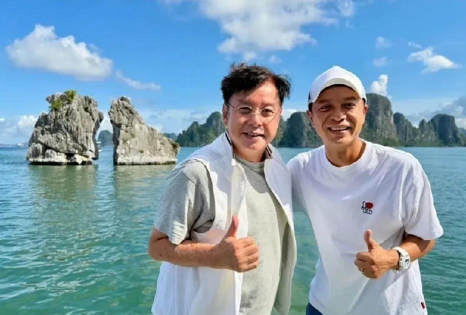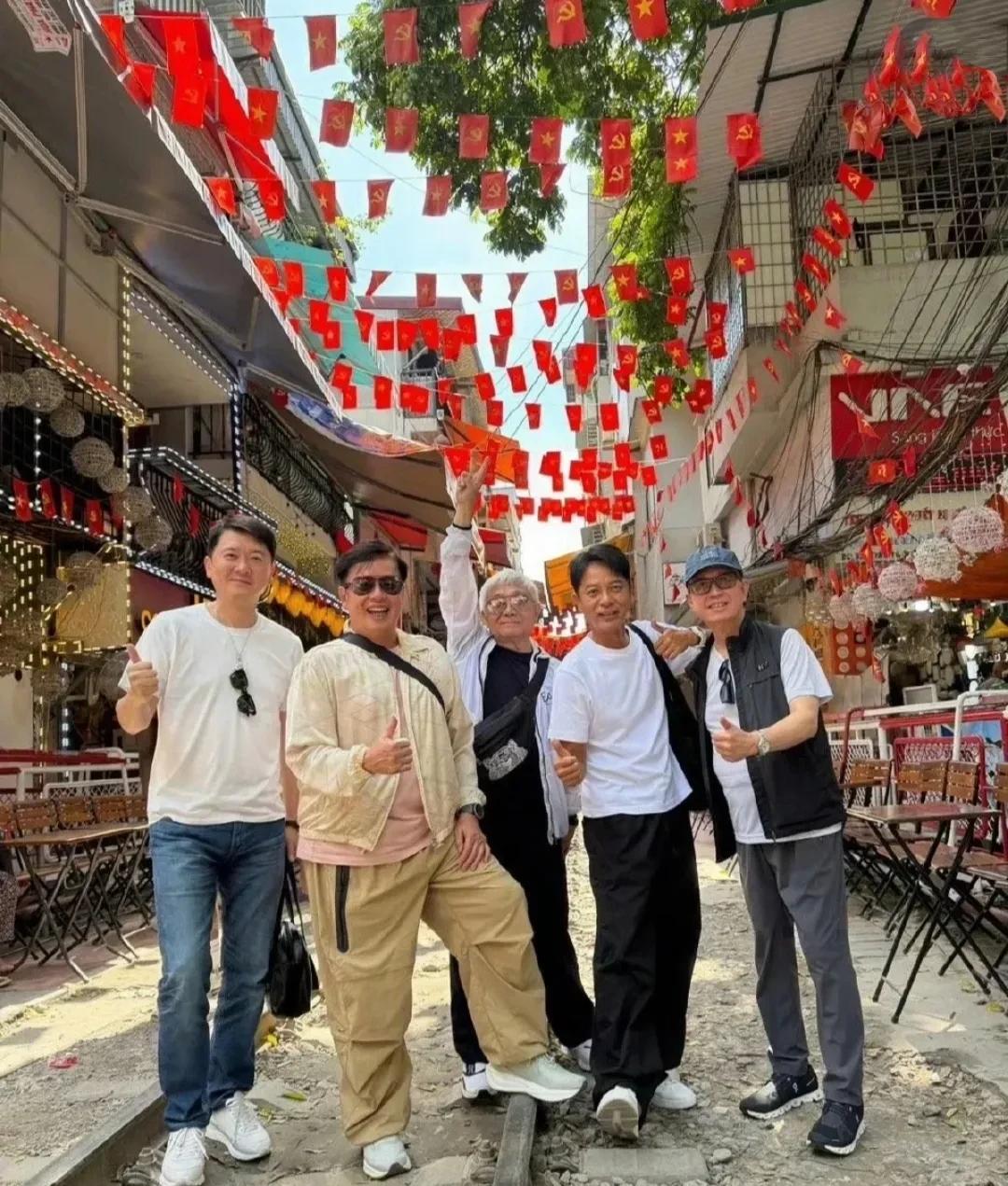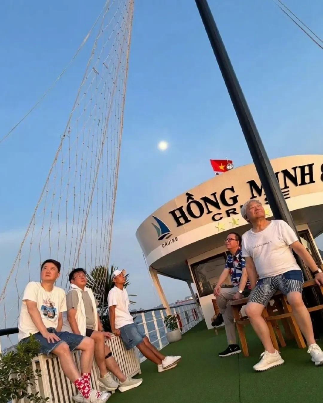“左麟右李”合体组团出游了! 谭咏麟、李克勤和邱子杰等一帮朋友,现身越南度假。与朋友出来玩就是开心,校长笑容满面,脸色红润,肤色还挺白的,胳膊腿都不大肚腩却很大,微微发福的脸让他看起来很年轻。 李克勤本人超瘦的,肤色好黑,法令纹很深,眼袋很大,眼角上下垂。 看他与75岁的谭咏麟同框,感觉才58岁的他,看起来比校长还老。果然,酷爱打羽毛球的他,太阳晒多了就是显老啊!
