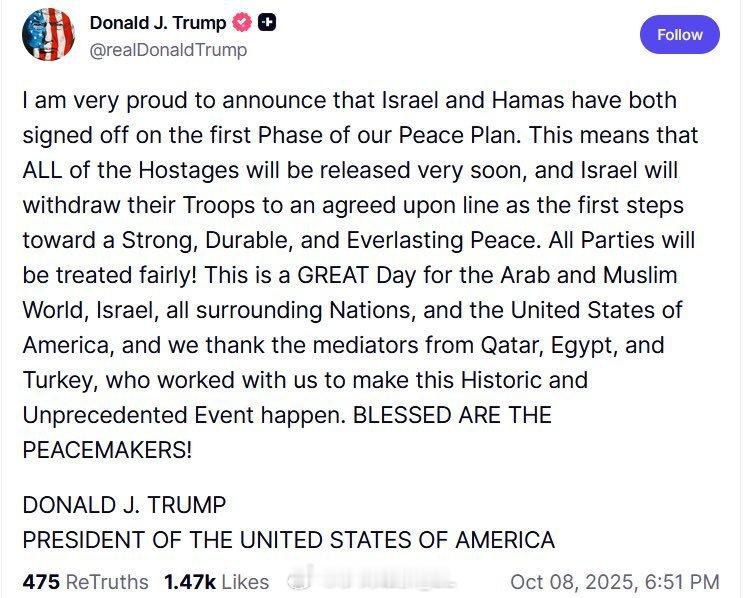 开罗谈判的加沙停火协议第一阶段协议已达成,正式的签署将在开罗时间今天中午12点进行。新的协议重新划定了撤军地图、换囚机制和开放人道主义援助的机制。