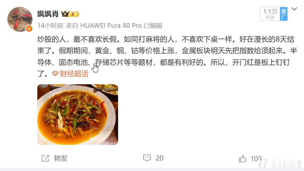 S-不出意外,贵金属、半导体、存储芯片等板块领涨,而传统的权重保险、券商、酿酒等继续压指数,旅游、餐饮、院线领跌。10月份,大概率还是继续延续9月份的趋势,继续在新质生产力里面挖掘。财经[超话]