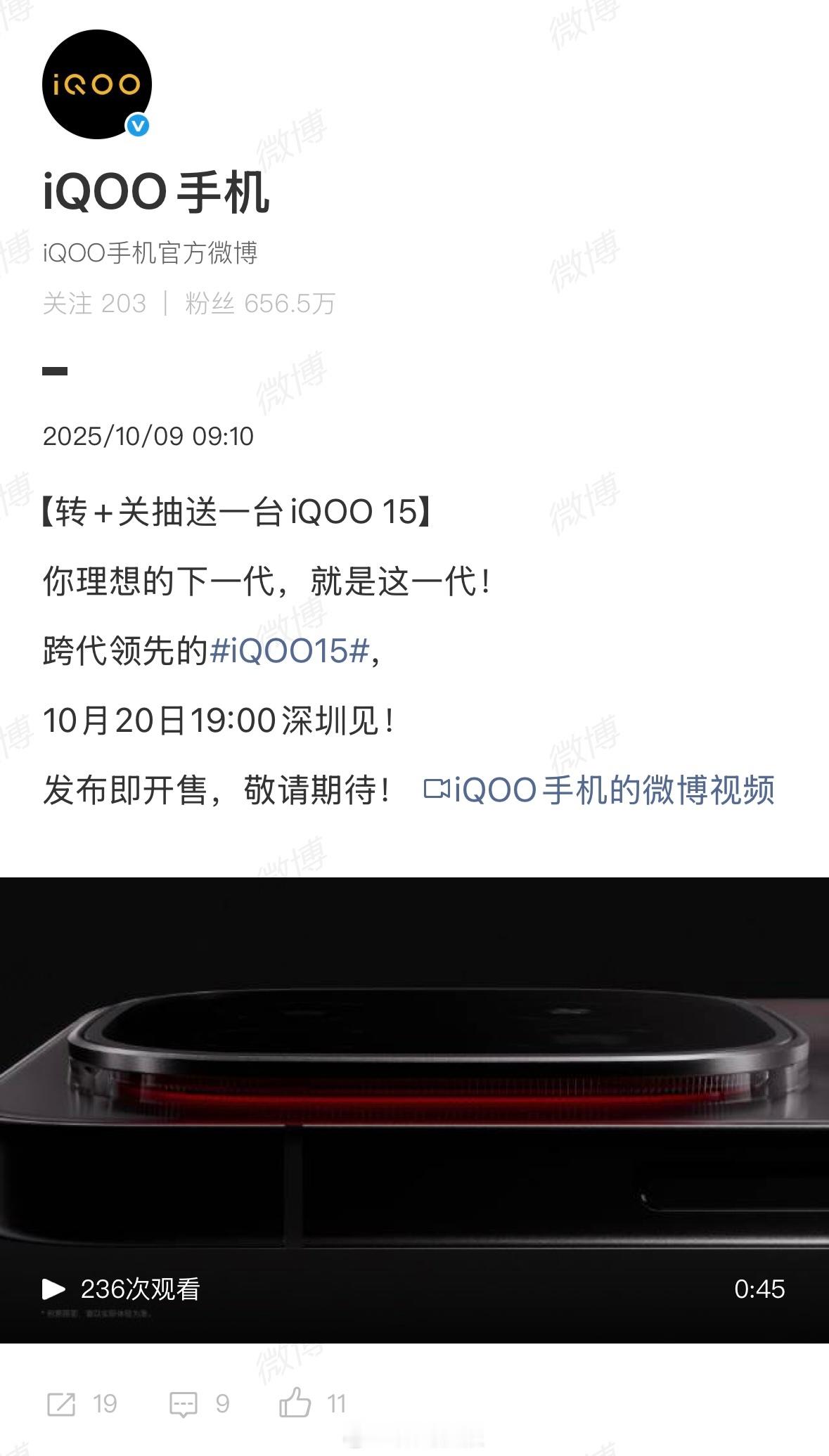 10月20日:iQOO 15发布会