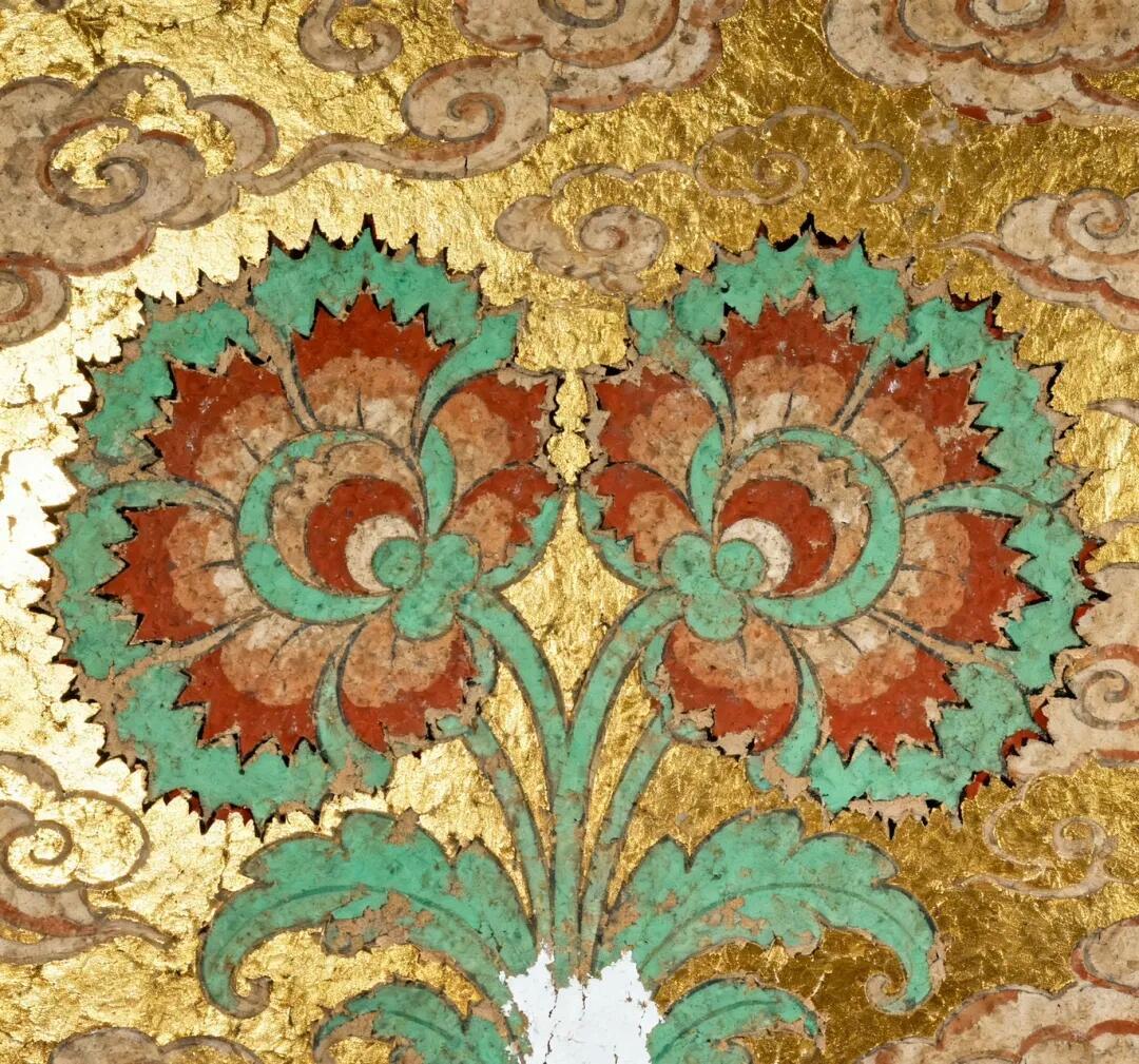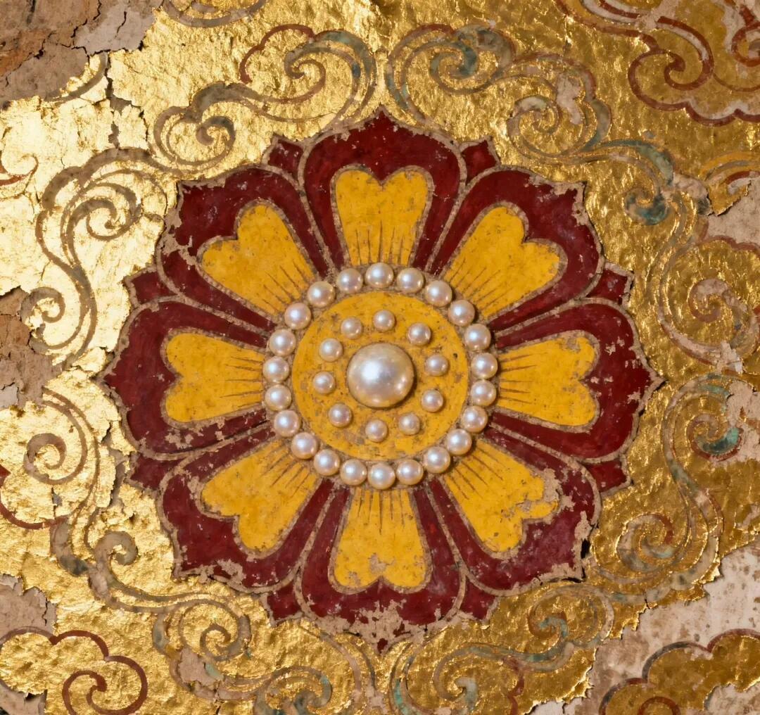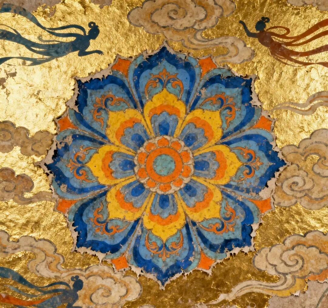 宝相花纹样|唐代宝相花,融合莲花之圣洁、牡丹之华贵、菊花之雅致,以中心对称的放射状花瓣,层层晕染,如宝珠生辉,尽显盛唐气象。