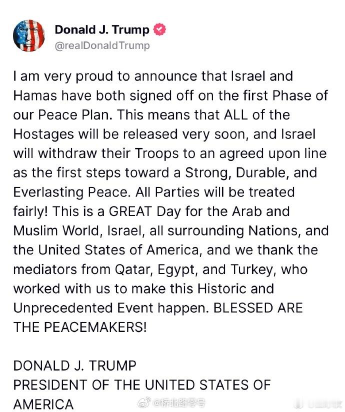 加沙停火协议【特朗普称以色列哈马斯已签协议】当地时间10月8日,美国总统特朗普在