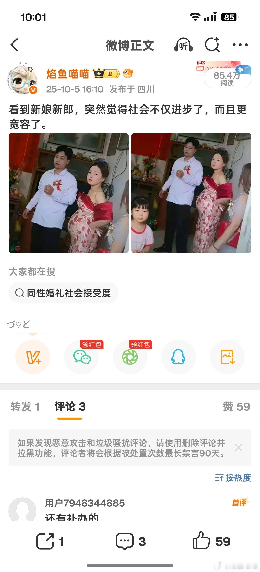 看到新娘新郎,突然觉得社会不仅进步了,而且更宽容了。