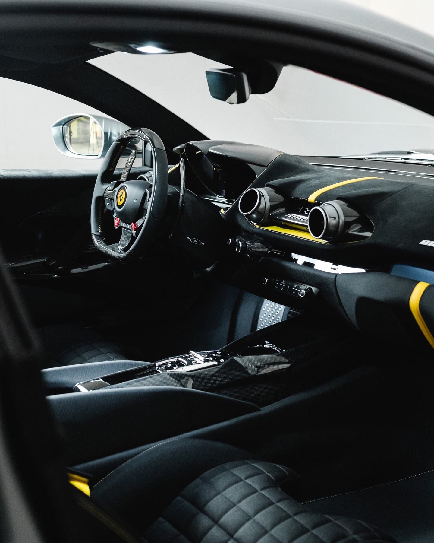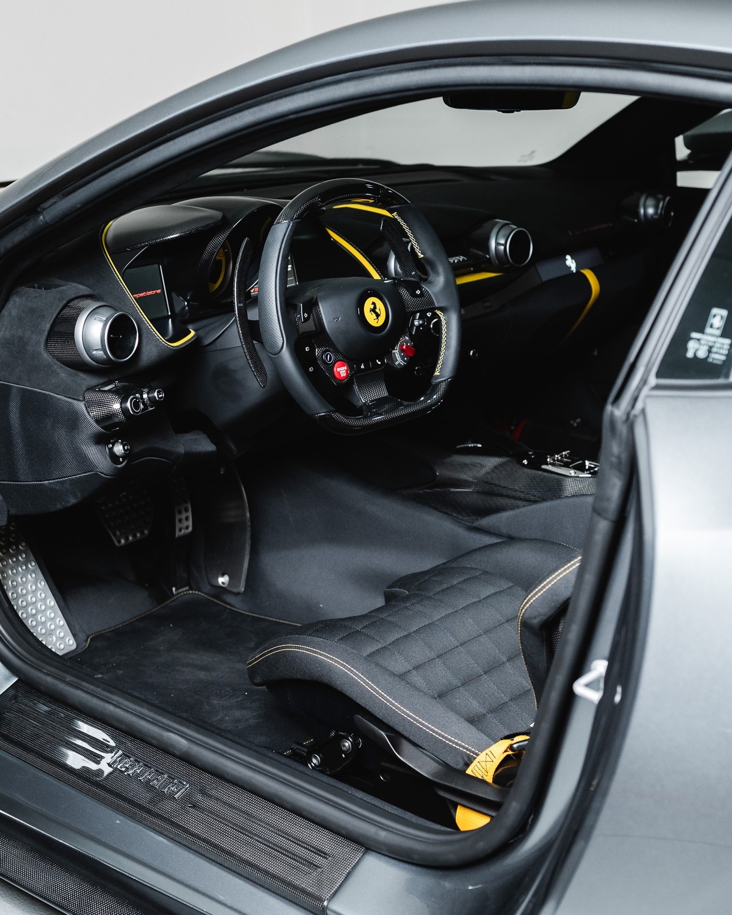 这款2023年车型,已交付给德国的唯一车主,采用Grigio Competizione漆面,搭配Giallo Fly中央条纹和Nero Alcantara内饰。引擎盖下隐藏着6.5升,830马力的V-12引擎,转速高达9,500转/分钟,配以大量的重量减轻,空气动力学优化和更精准的变速箱调校。