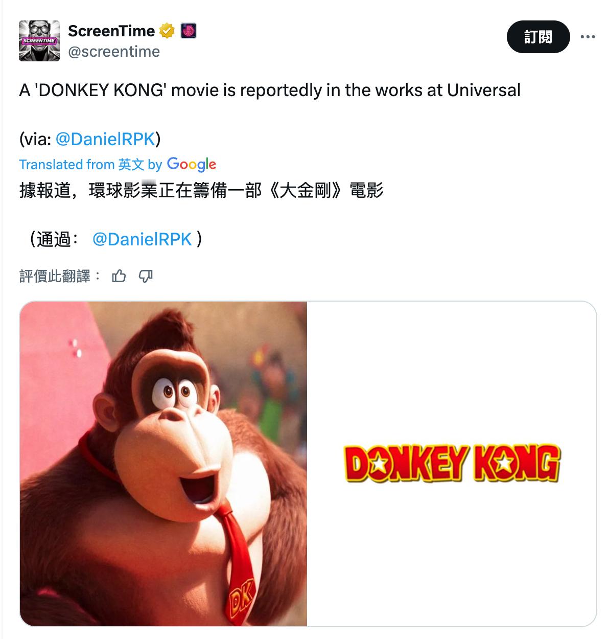 【传任天堂将推出《咚奇刚大电影》,环球影业打造】