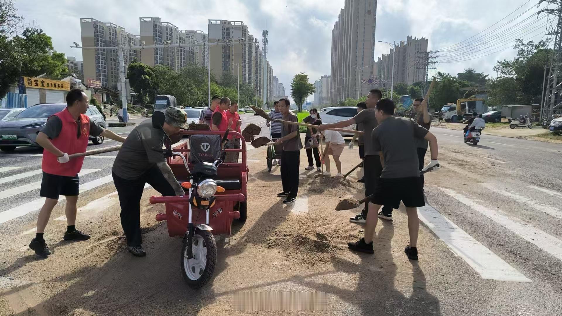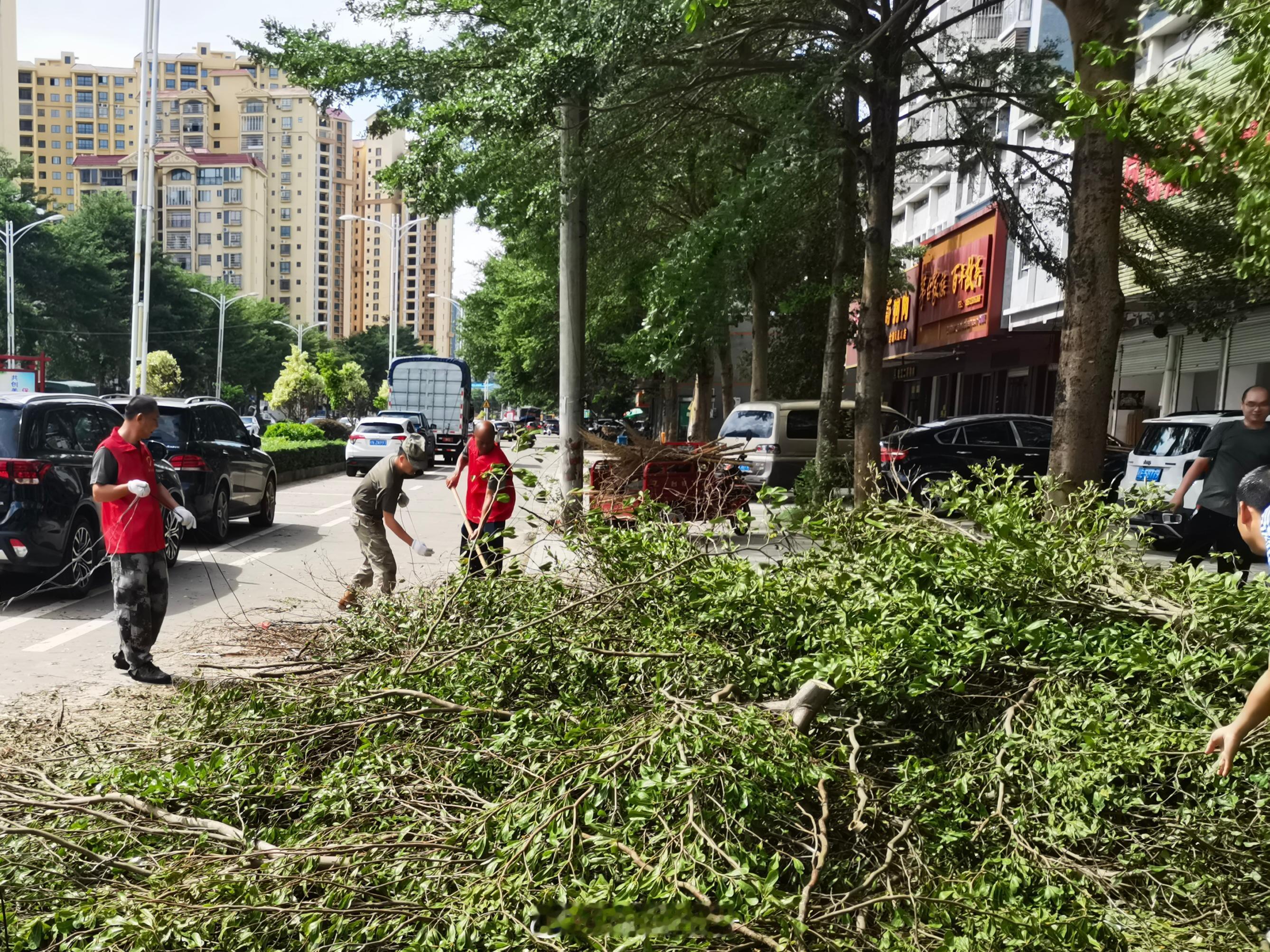 【合浦县人武部全力投入“麦德姆”台风灾后清障工作】受台风“麦德姆”影响,广西北海市合浦县城区主干道出现大面积树木倒伏、断枝堆积现象,严重影响交通出行。灾情发生后,合浦县人武部迅速行动,组织干部职工投入灾后道路疏通清障工作,全力保障群众出行安全。子弟兵奋战在抢险救灾一线(朱美军)