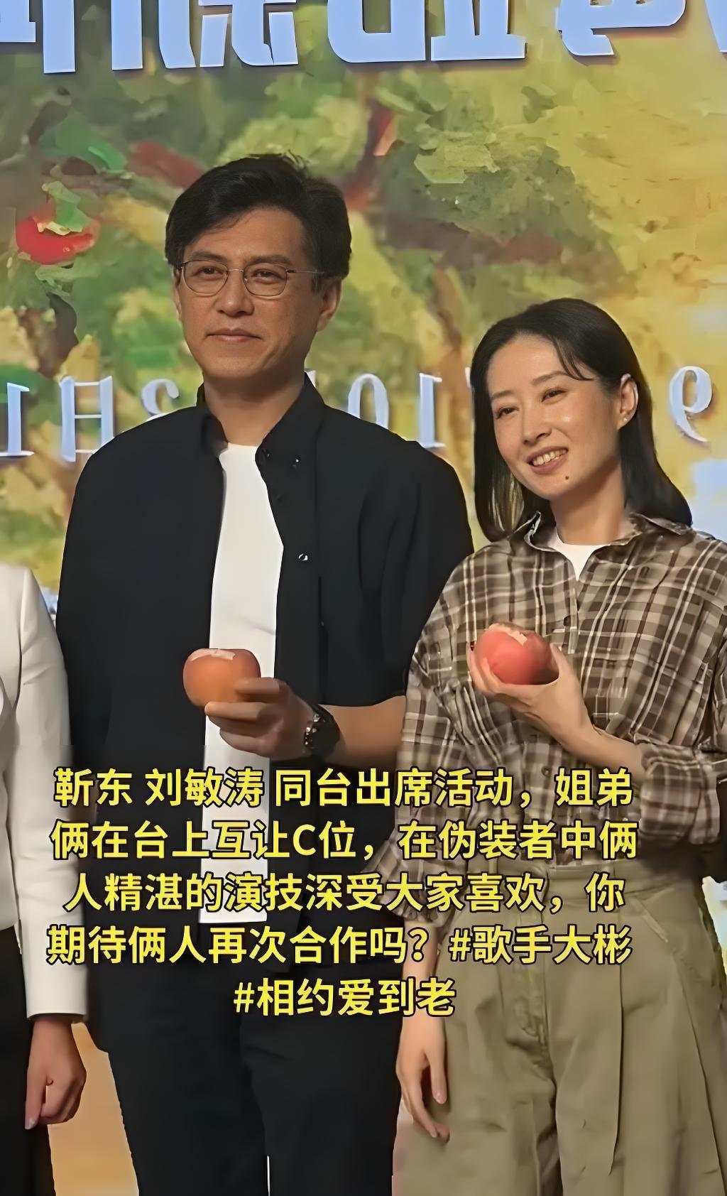 近日活动现场,靳东主动让刘敏涛站C位,自己则谦逊退至一旁。两人因合作《伪装者》结