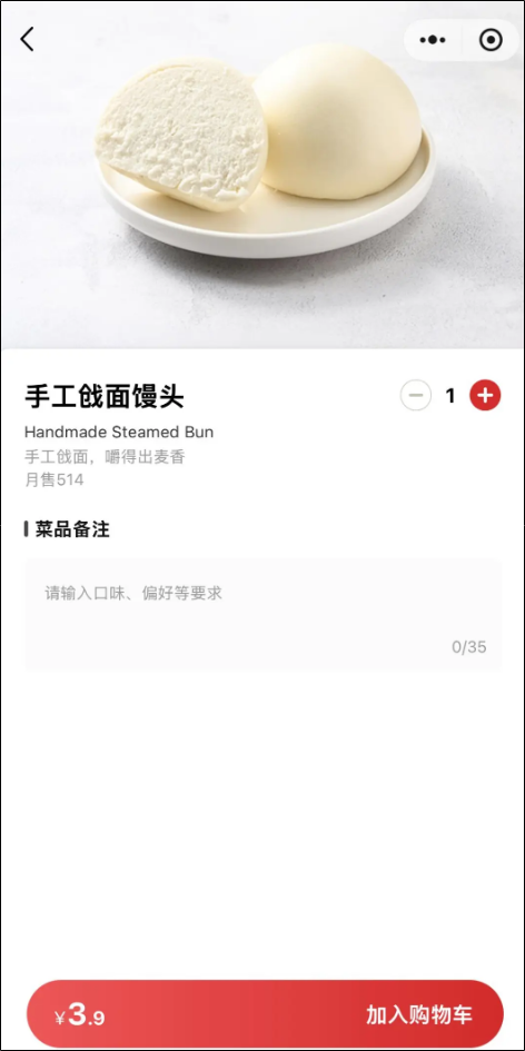 西贝微信小程序点单平台显示,确有3.9元一个的馒头,菜品界面显示,该馒头为手工戗面馒头,每个馒头120克。