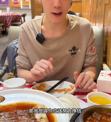 翻译一下:他说吃不起就不要吃,琼b!谁吃不起4块钱一个的馒头?有种露个脸,比他有钱骂他的人一大堆。