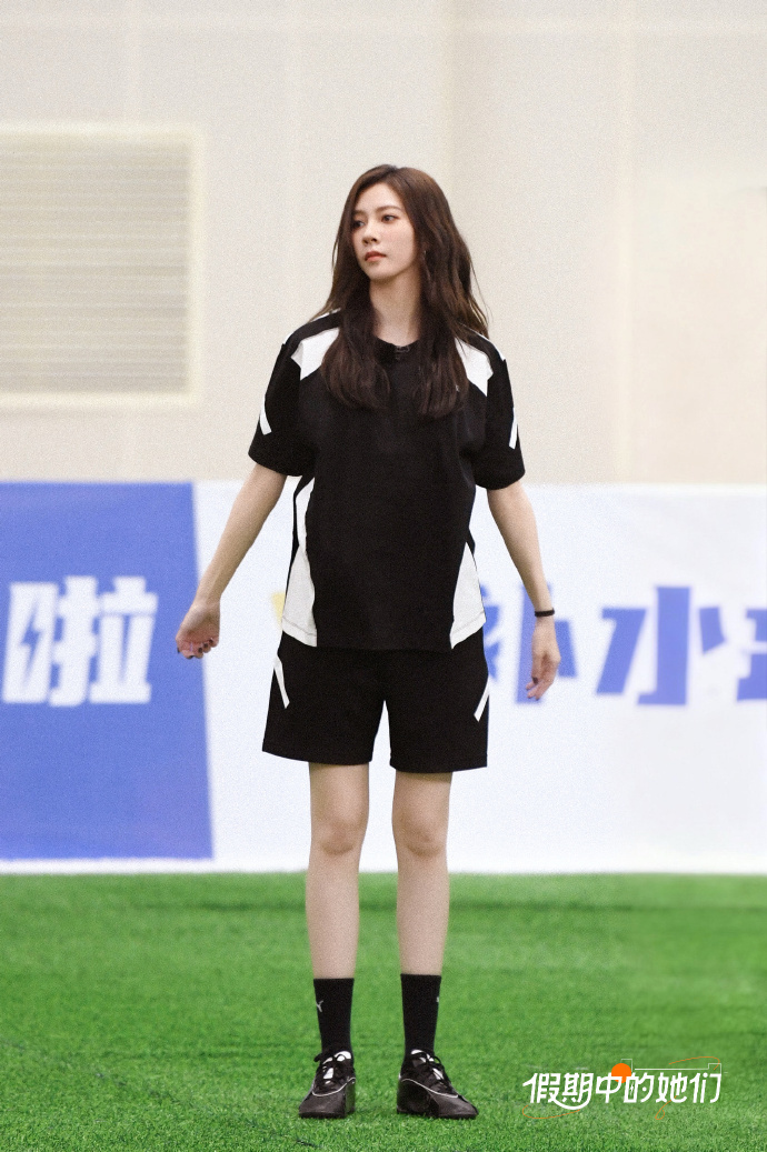 运动型女宋妍霏 绿茵场上的宋妍霏,allblack很酷!披发和绑马尾都活力满满,