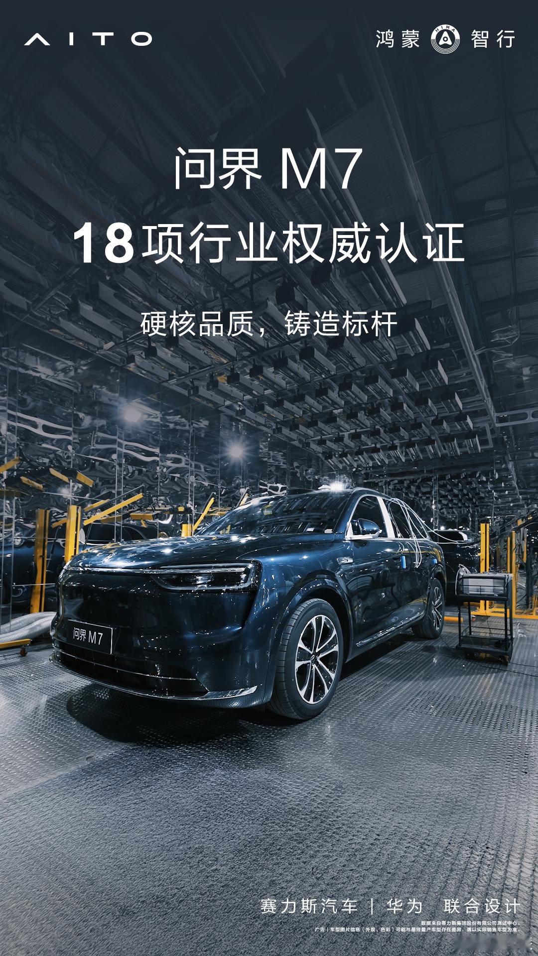 全新问界M7研发投入超40亿 全新问界M7历经三年磨砺,投入40亿重磅打造,在外观设计、空间座舱、性能驾控与安全能力等维度实现全方位进阶。整车品质把控上,新车以超十万项严苛工序打造高端品质,通过远超行业标准的安全测试,并斩获18项权威行业认证,确保车辆的可靠性与耐用性。据悉,新车路测里程突破1300万公里,以真实路况验证硬核产品实力,为用户提供更安全、更舒适的出行体验。全新问界M7路测超1300万公里