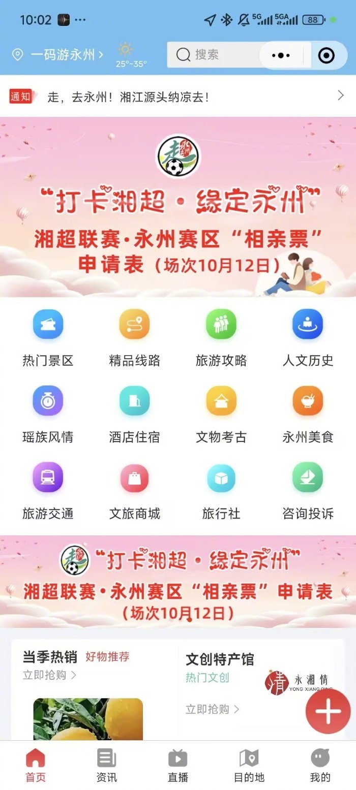 此外,记者通过“一码游永州”微信小程序尝试提交申请,但点击相应界面后并未弹出对应的报名窗口。对此,该工作人员表示,相关事项正在推进,报名渠道即将正式上线,稍后会通过“永州文旅”公众号发布正式通知,届时感兴趣的球迷朋友即可通过此渠道申请“相亲票”。(见习记者 周镕健)