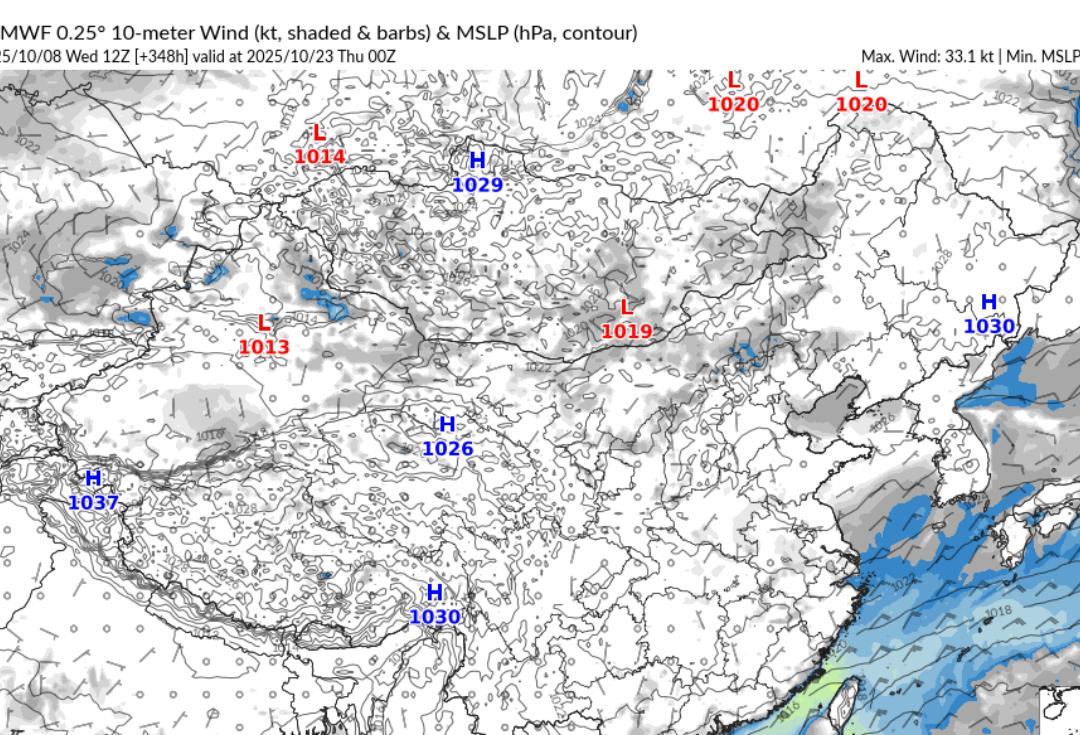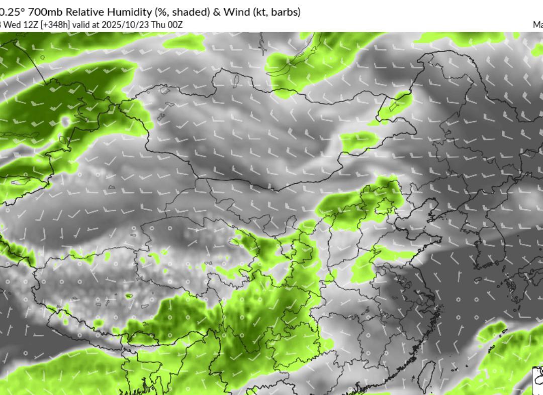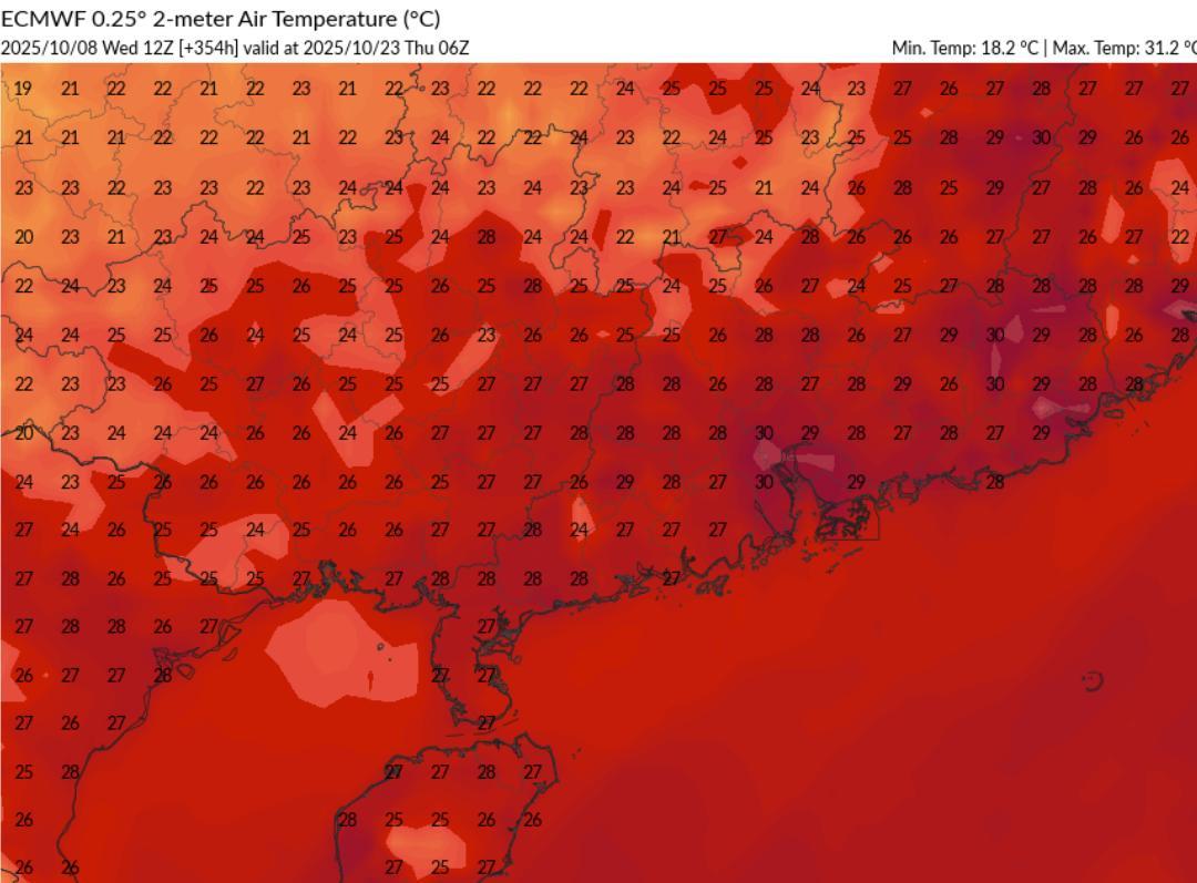 看来副热带高压也强不起来了。 根据最新的数值预报来看,10月23日,副热带高压进一步南退到了广东、广西一带。 从地面风场和气压场来看,影响南方的冷空气逐渐减弱结束了,冷空气过后,温度降下来了,而且从700和850 百帕流场来看,没有暖湿气流反攻,看来南方的秋天开始逐渐靠近了。 从云量预报来看,10月23日南方大部云量较少,天气都比较晴好,冷空气过后 ,再加上夜间晴空辐射降温,这种天气早上是非常寒凉的。 从温度预报来看,10月23日早上,湖南、江西、广西一带的温度都在15~16 度左右。这个温度需要穿一件外套了,但是等白天太阳出来过后,温度又会迅速上升。 23日下午向江西南部、广西东部、广东一带的温度都在27~29 度左右,早晚温差较大 ,应注意合理的穿衣。 这种天气,就是早上过秋天,下午过夏天。 …数值仅供参考…