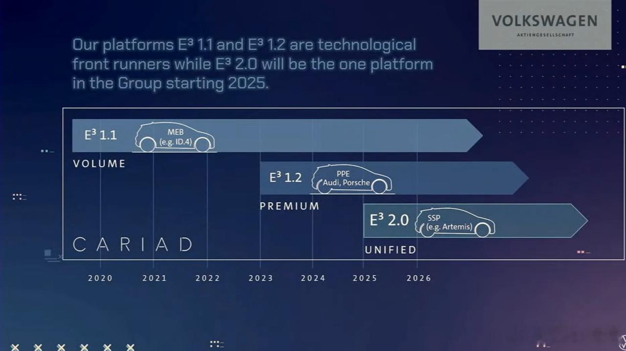2020 年大众成立软件子公司 Cariad,核心目标是打造 VW.OS 操作系统,统一旗下大众、奥迪等多品牌软件架构,推动向科技公司转型,初期抽调 4000 名工程师,计划扩至万人。