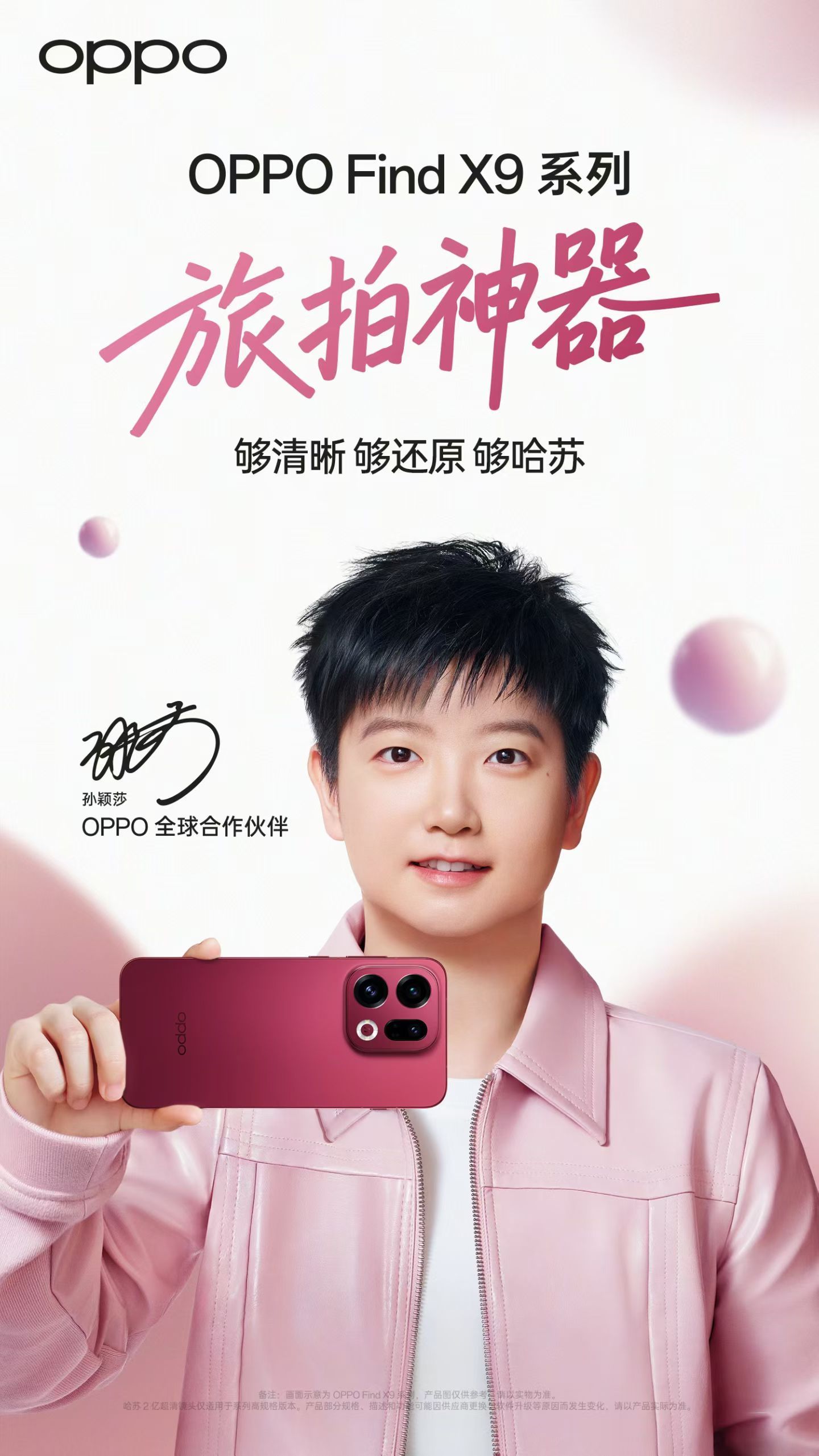 OPPO Find X9 系列宣布将推出全新的“特别色”追光红,由孙颖莎代言。