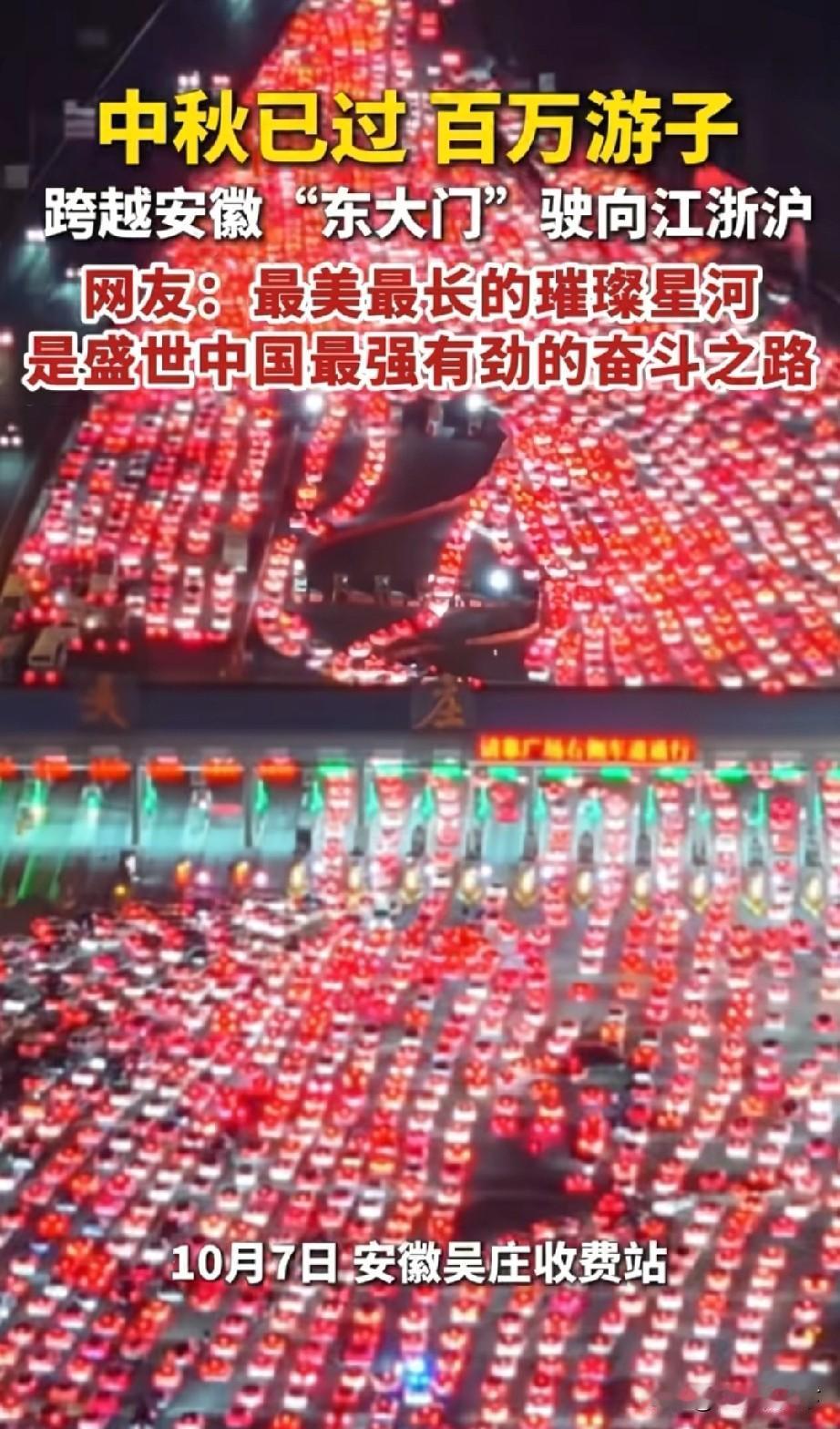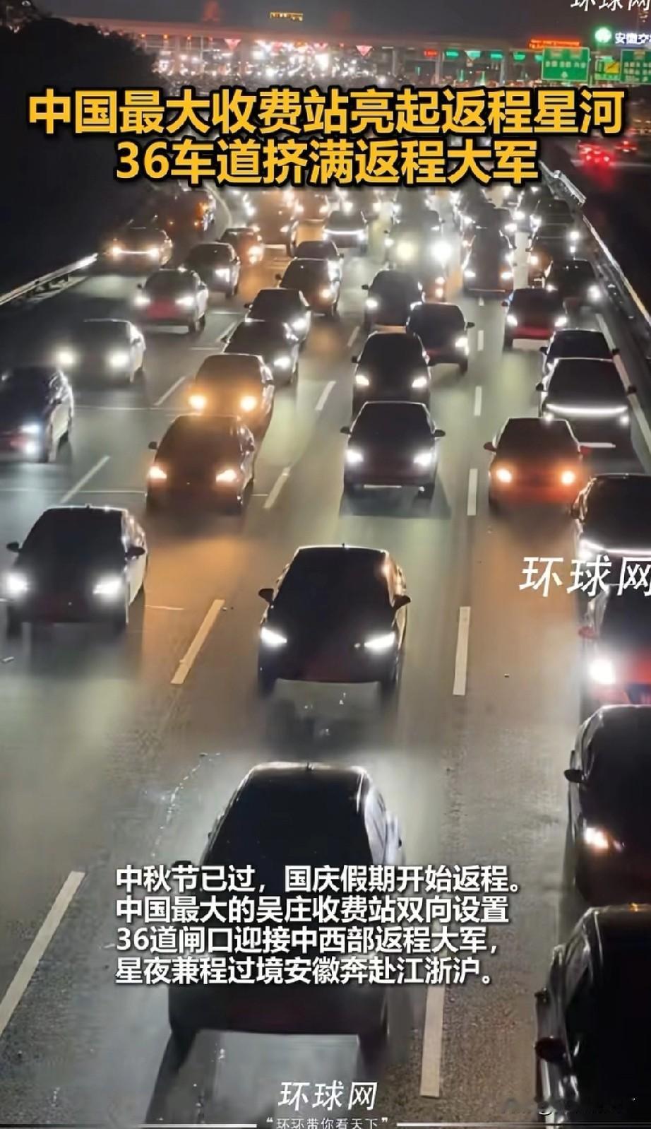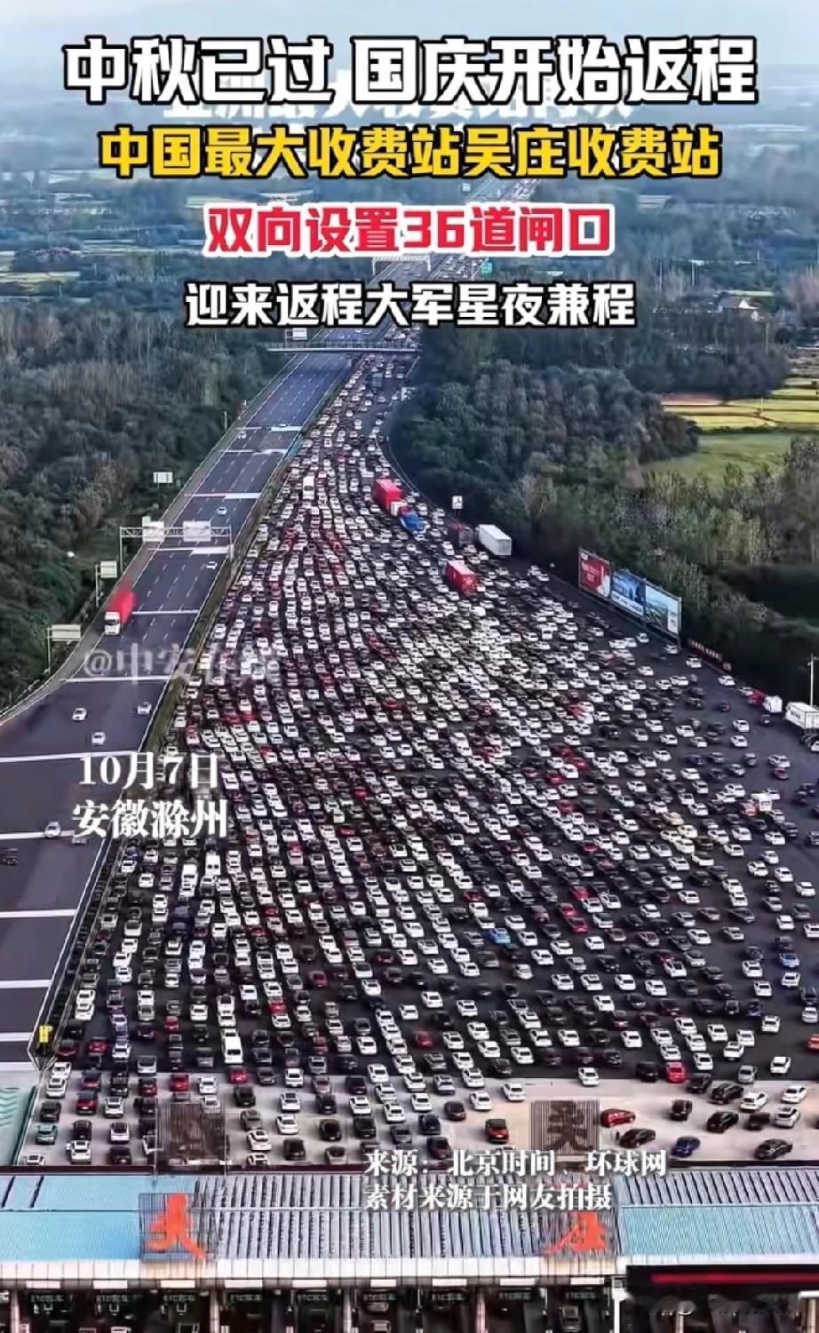 滁州市全椒县吴庄收费站,是中西部省份进入江浙沪的“东大门” 10月7号,国庆中秋假期出现返程高峰大客流,位于安徽省滁州市全椒县的吴庄收费站,被央视,环球网等媒体重点在报道,这里是中西部省份车辆去往江浙沪的“东大门”。 每年的节假日,吴庄收费站都是热门地方,主要就是大客流聚集,位于苏皖省界处,36个车道,昼夜不停,是亚洲最大的收费站。 从吴庄收费站往西,是家的方向,是日夜牵挂的故乡。 从吴庄收费站往东,是工作的地方,是努力奋斗的他乡。 一座吴庄收费站,是千万打工者对故乡和他乡的分界线,过了吴庄收费站,下次回家的时间就要等到春节了。吴庄收费站 全椒收费站