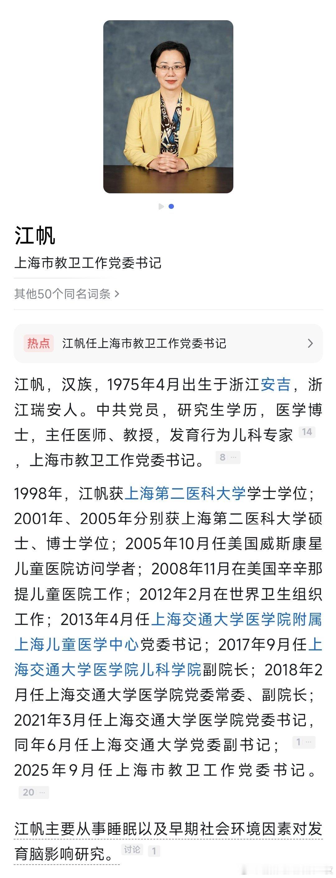 江帆已任上海市教育卫生工作委员会书记。热点现场