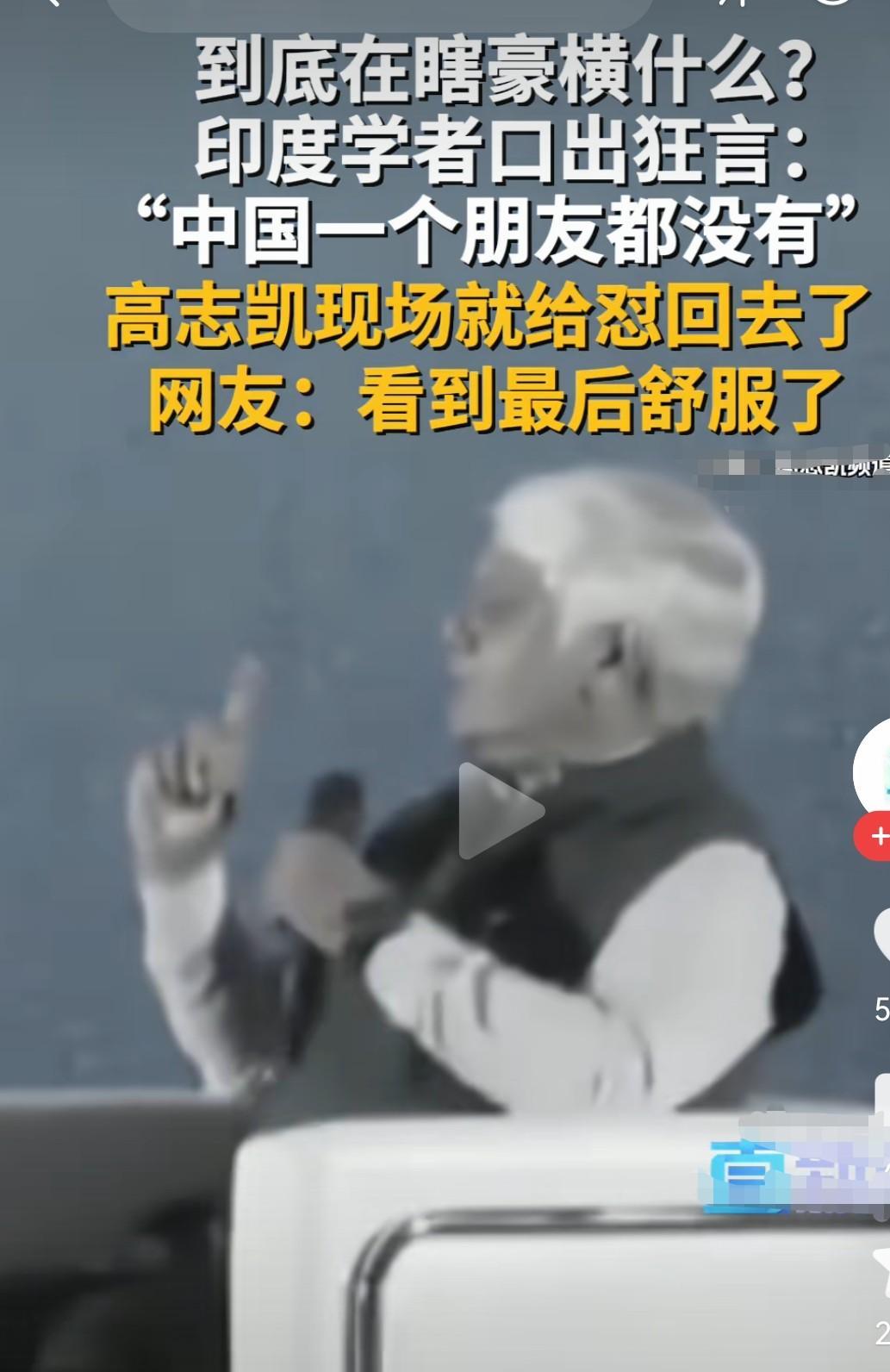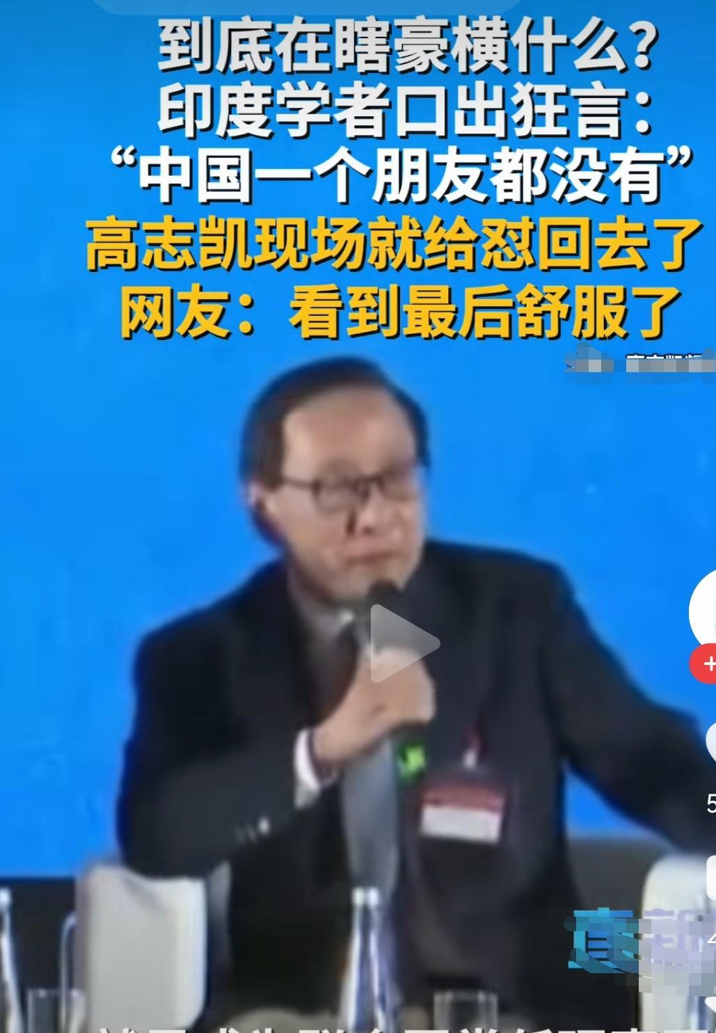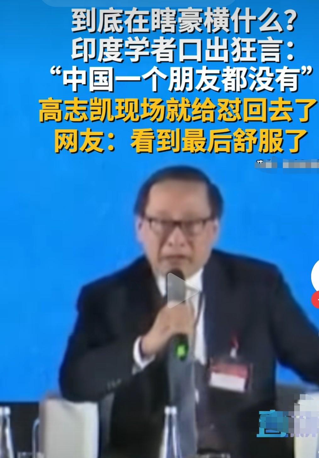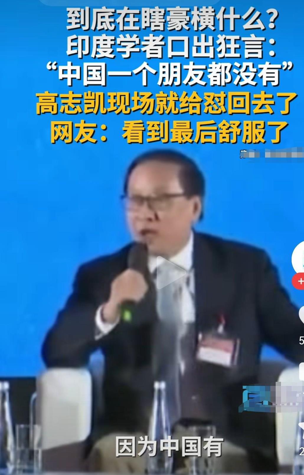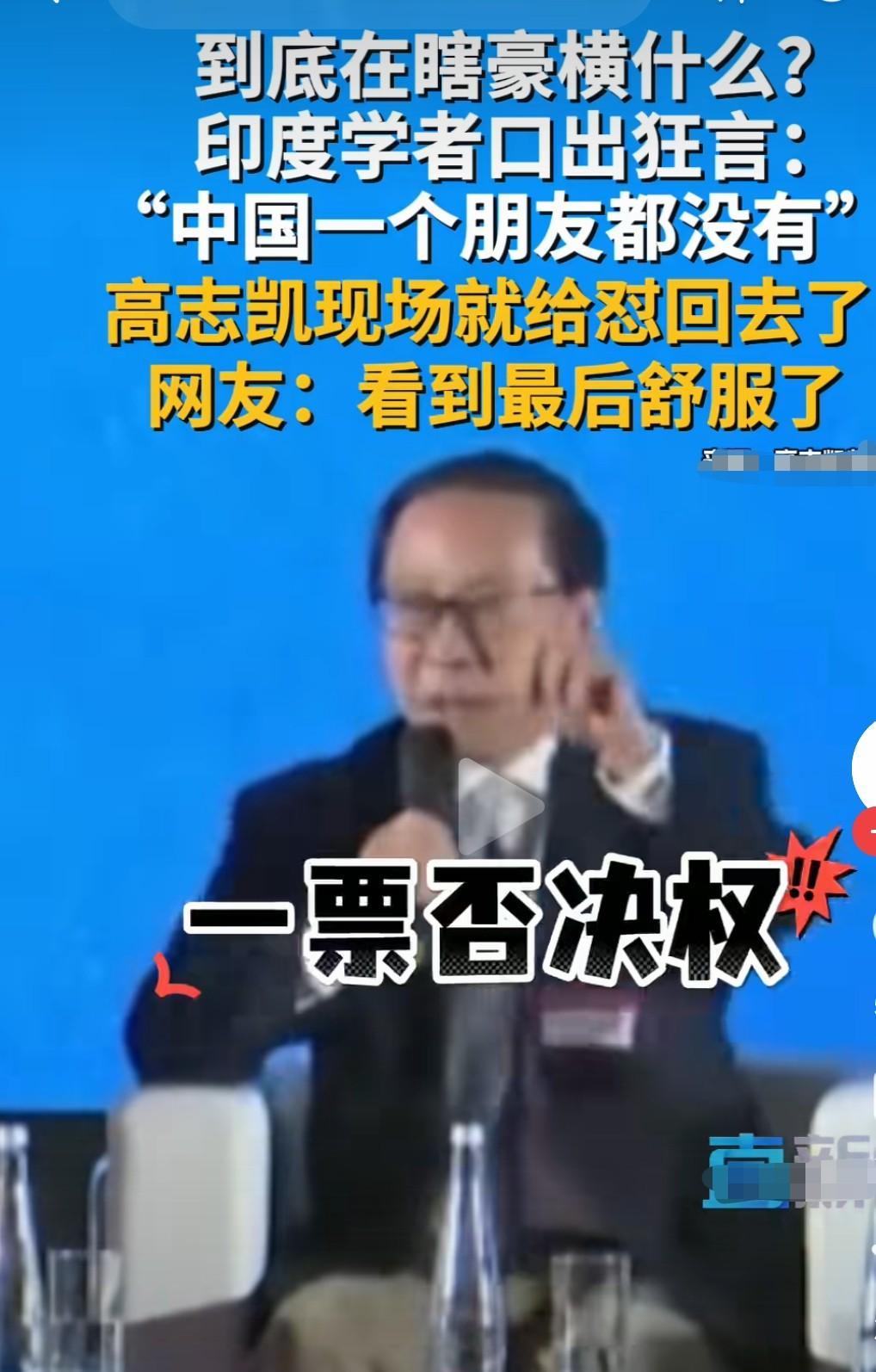 印学者挑衅说我们没有朋友, 高教授全程高燃回击, 如果印不把我们当朋友, 那就永远别想成为常任理事国, 因为我们有一票否决权, 这话说出来把印学者直接整怕了不敢说话。