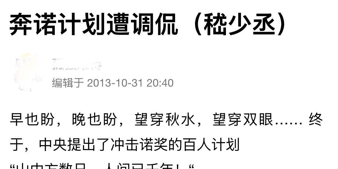2001年,日本制定了“第二个科学技术基本计划”,该计划雄心勃勃地表示,要在“50年要拿30个诺贝尔奖”。当时评价“口出狂言”。现在看,有实现可能性;2013年,咱也有类似计划,10年后“诺贝尔奖”将成为常态,当时候选人都圈定了,不知道那些诺奖候选人?现在看起来成为常态还需要时间。加油!