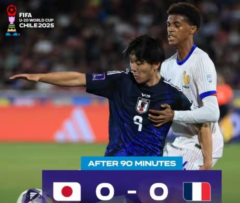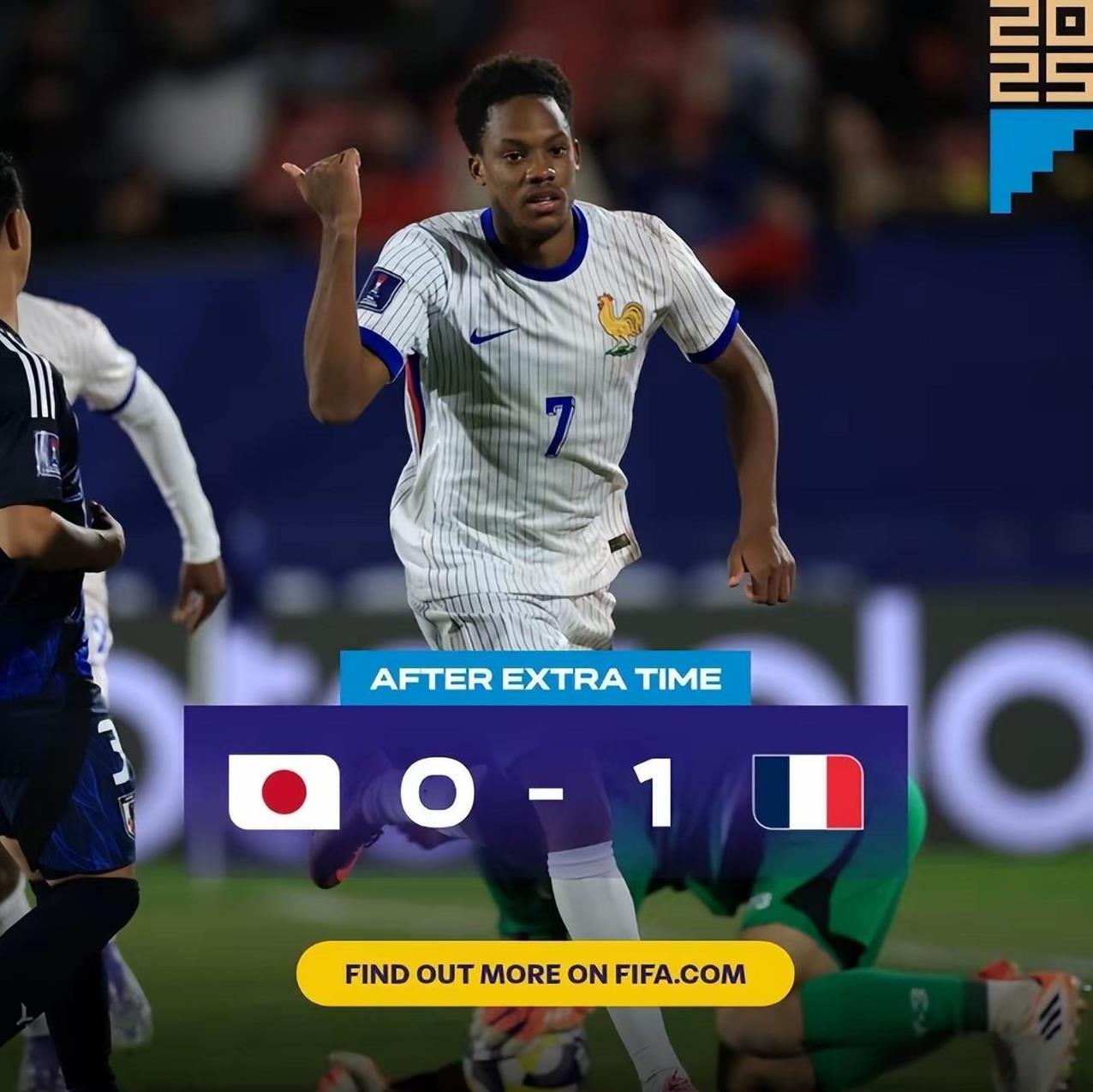 世青赛1/8决赛,日本队对阵法国队,虽然全场控球率法国队更高,但日本队的射门次数多于法国队,但两队常规时间都未取得进球。加时赛下半场补时阶段 ,法国队球员卢卡·米沙尔主罚点球命中,绝杀日本队,无缘晋级的日本球员躺倒一片,泪洒球场。