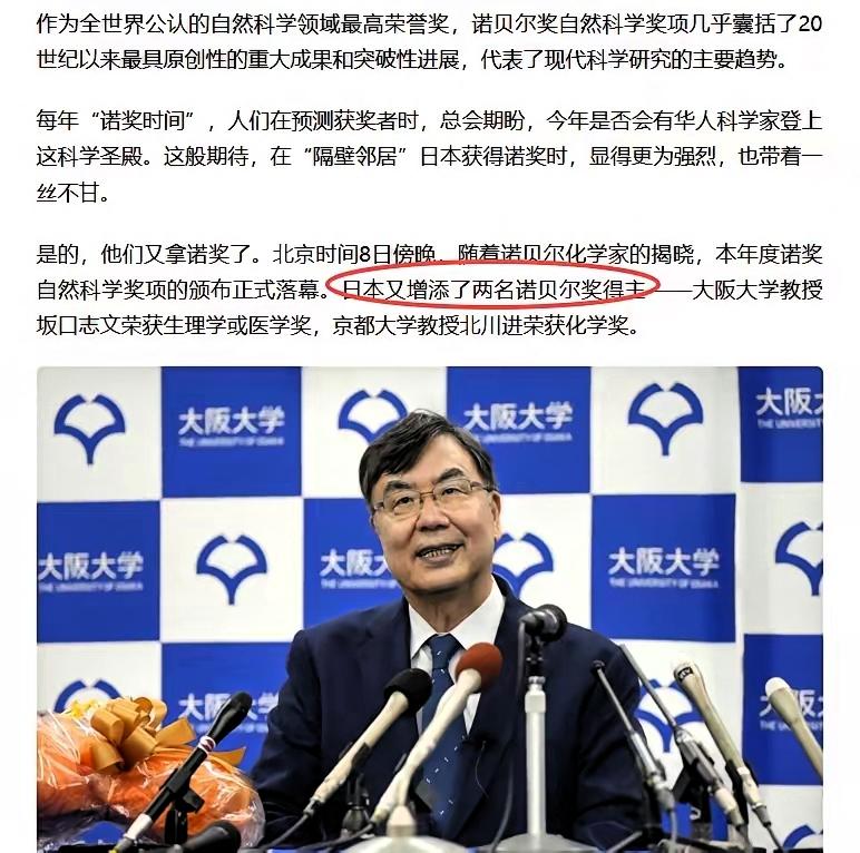 刚刷到日本又添俩诺奖,掐了烟忍不住想:这国家明明错失了互联网风口,经济低迷这么多年,咋能攒下近30个诺奖? 有人说靠战前老本,可2000年后人家已经拿了21个科学类诺奖,显然不是。关键藏在细节里:日本小孩暑假不刷题,忙着做“自由研究”——有人蹲河边10年记垃圾变化,有人算上学路走了多少米。大学教授能安安静静待实验室,北川进教授磨材料磨了20多年才获奖,这背后是12%以上的基础研究投入和不催进度的科研环境 。 说白了,诺奖是“慢变量”,拼的不是刷题速度,是从小埋下的兴趣火种,和能让火种烧几十年的耐心。咱们天天逼孩子刷题内卷,反而可能掐灭了原创的火苗。 作为家长,你会让孩子放下习题,去做次“自由研究”吗?来评论区聊聊~