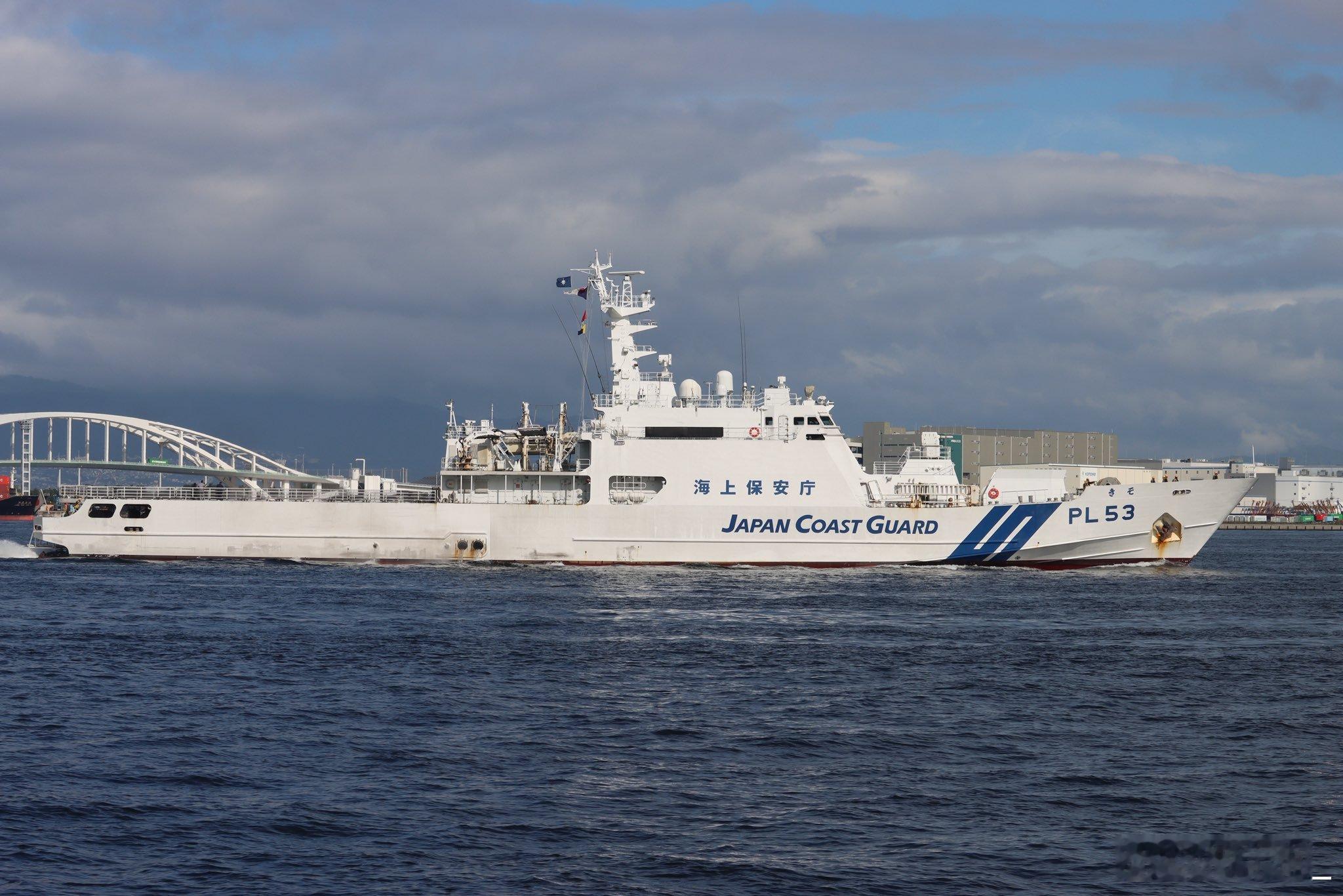 PL-53“木曾”号巡视船前天驶入大阪港。此船正在船厂维保,舰首的40炮尚未装回。
