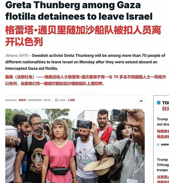瑞典政府现在受到的压力非常大,毕竟环保少女在西方政治正确的那个圈子里面,影响力还是非常大的。现在的欧美,反犹已经形成一种浪潮,短视频平台的崛起,让以色列人再也藏不住他们的秘密了。 说起最近这事儿,得从格蕾塔·通贝里那艘去加沙的船队说起。这姑娘,本来是环保圈的扛把子,从十几岁开始就因为气候罢课闹得全世界都知道。现在呢,她把矛头对准了中东那摊子事儿,加入了叫“全球苏穆德船队”的行动。这支船队从希腊出发,装满了医疗用品、食物和帐篷,本意是想突破以色列对加沙的海上封锁,直接送援助过去。结果10月1日,刚到国际水域,就被以色列海军给拦住了。船上四五百人全被扣了,包括通贝里在内。整个过程挺快的,直升机上兵从天而降,船被拖到阿什杜德港,然后这些人就进了拘留所。 通贝里被关在条件差劲的牢房里,据她后来告诉瑞典官员,里面有虫子爬,吃的就一块硬面包和一点水,审讯的时候灯光晃眼,官员问来问去她都不怎么开口。其他活动家也爆料,说没干净水,没律师见面,基本就是关着等处理。这事儿一曝光,国际上炸锅了。通贝里这人,在西方那些注重人权和进步议题的圈子里,影响力不是盖的。她一发声,马上就有上百万转发,各种抗议游行就起来了。瑞典国内更是热闹,斯德哥尔摩街头天天有人举牌子喊口号,要求政府出面要人。瑞典外交部赶紧表态,说如果虐待这些事儿是真的,那性质就严重了,会跟以色列要个说法。但说实话,这话听着硬气,实际操作起来,瑞典政府走得挺谨慎的。毕竟以色列是老盟友,欧盟内部也分两派,一派挺巴勒斯坦,一派顾及安全合作。瑞典这小国,夹在中间,压力山大。国内媒体天天追着问,民众游行规模越来越大,政府得给个交代,但又不能真撕破脸。结果呢,就发了个声明,强调领事保护啥的,实际没啥大动作。通贝里这影响力,直接把瑞典推到风口浪尖上,政府内部估计也头疼坏了。 再看欧美那边,这波事件正好赶上反犹情绪高涨的节骨眼儿。从去年加沙冲突升级开始,反犹事件就没断过。欧盟一个调查显示,90%的犹太人说网上到处是反犹内容,暴力骚扰也多了。法国、德国、英国这些地方,犹太学校门前喷漆的、砸玻璃的,层出不穷。欧盟基本权利署的报告直指,这股浪潮跟以色列-加沙的事儿脱不了干系。很多人把对以色列政策的火气,转嫁到犹太人头上,虽然这逻辑站不住脚,但情绪上头,谁管那么多。通贝里被扣的消息一出,马上就跟这股浪潮挂钩了。她的支持者们在网上刷屏,说以色列这是在打压人权声音,各种阴谋论满天飞。瑞典政府这时候更难办了,本来国内左翼就对以色列有意见,现在通贝里一掺和,压力直接翻倍。政府得平衡犹太社区的感受,又得安抚环保和人权圈子,外交部发言人天天开会商量怎么措辞。结果呢,声明发了,但没提制裁啥的,就说会调查虐待指控。这态度,国内右翼说太软,左翼说不够硬,政府里头估计天天吵架。 通贝里这人,影响力大到什么程度?她在西方政治正确圈子里,基本是代言人。环保、人权、反战,这些标签一贴,谁敢不理?她从气候罢课起步,现在扩展到巴勒斯坦援助,步步为营。加入船队前,她就公开说,这是对加沙封锁的挑战。结果被扣后,她没签驱逐文件,坚持72小时拘留期满才走。这举动,又给她加分不少。10月6日,她和其他171人被遣送到希腊,雅典机场一落地,就有支持者接机。她马上发视频,展示拘留所的铁丝网和憔悴的脸,说援助没送到,但以色列政策暴露了。视频一出,又是百万转发。瑞典政府这时候松口气,但压力没散。国内示威还在继续,民众要更强硬回应,政府只能通过媒体说,会跟进虐待调查。实际呢,以色列那边说这是例行安全检查,船队违反封锁,扣人是合法的。双方各说各话,但通贝里这事儿,让瑞典在欧盟内部的形象有点尴尬。其他北欧国家看着,也得掂量掂量。 反犹浪潮这块儿,说白了,是加沙冲突的副产品。从2023年哈马斯袭击开始,欧洲反犹事件就翻倍。德国犹太人中心报告,去年暴力事件涨了80%。法国巴黎,犹太餐馆被砸的新闻天天见。英国也一样,大学校园里反以色列抗议,经常滑向反犹。短视频平台推波助澜,TikTok上,加沙医院空袭的剪辑,配上“以色列秘密”的字幕,年轻人一刷就信了。平台说会删反犹内容,但实际执行松散。N12调查显示,TikTok靠偏向以色列的来源,但反犹视频还是满天飞。通贝里事件一出,这些视频又多了一波素材,她的拘留照成了新热点。欧美犹太社区压力大,ADL组织天天发报告,拆穿假新闻。但浪潮这东西,刹不住车。瑞典作为北欧福利国家,本来反犹就少,现在因为通贝里,国内犹太人也有点不安。政府得安抚,但又不能忽略人权声音。这平衡,难。
