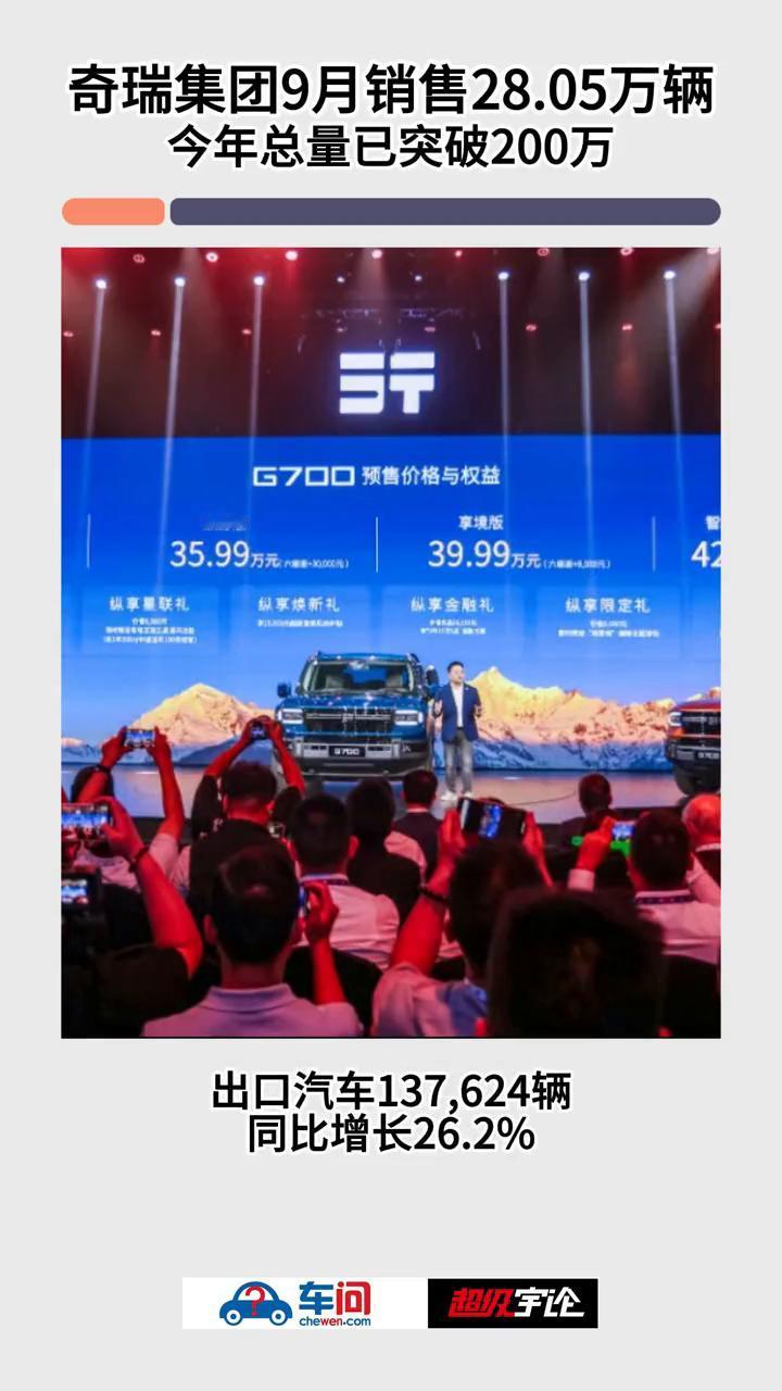 奇瑞集团9月销售28.05万辆,今年总量已突破200万。 超级宇论。 2025年