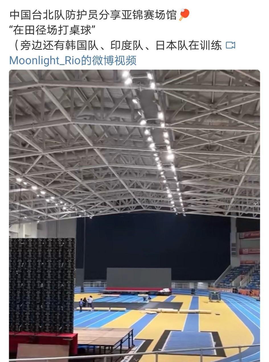 国乒和中国台北队都已抵达印度。 今天看到中国台北队的队医分享了几条动态,不过国乒去了后,一天了就看着一张有点模糊的照片,不过知道他们平安抵达那里就好。后天就要比赛了,比赛场馆的地胶还没有贴好,而且没有单独的训练馆,训练的地方和比赛的地方在一起。 这场馆简陋不说,连个临时的休息区都没有设置,真的不知道是谁同意印度举办亚锦赛了,看了一下训练的球台很简陋,而且只有六张球桌,运动员们要是都去了,那还得排队等着球台用了。 下午中国台北队已经开始训练了,台北男队不用打第一阶段的小组赛,去年也是拿了牌的,不过今年林昀儒和高承睿都没有参赛,希望其他人也能取得好成绩,中国台北队抵达印度后,在机场还拍了大合照。看到日本队、韩国队也到了,今天也在那里训练,港队好像还没到。