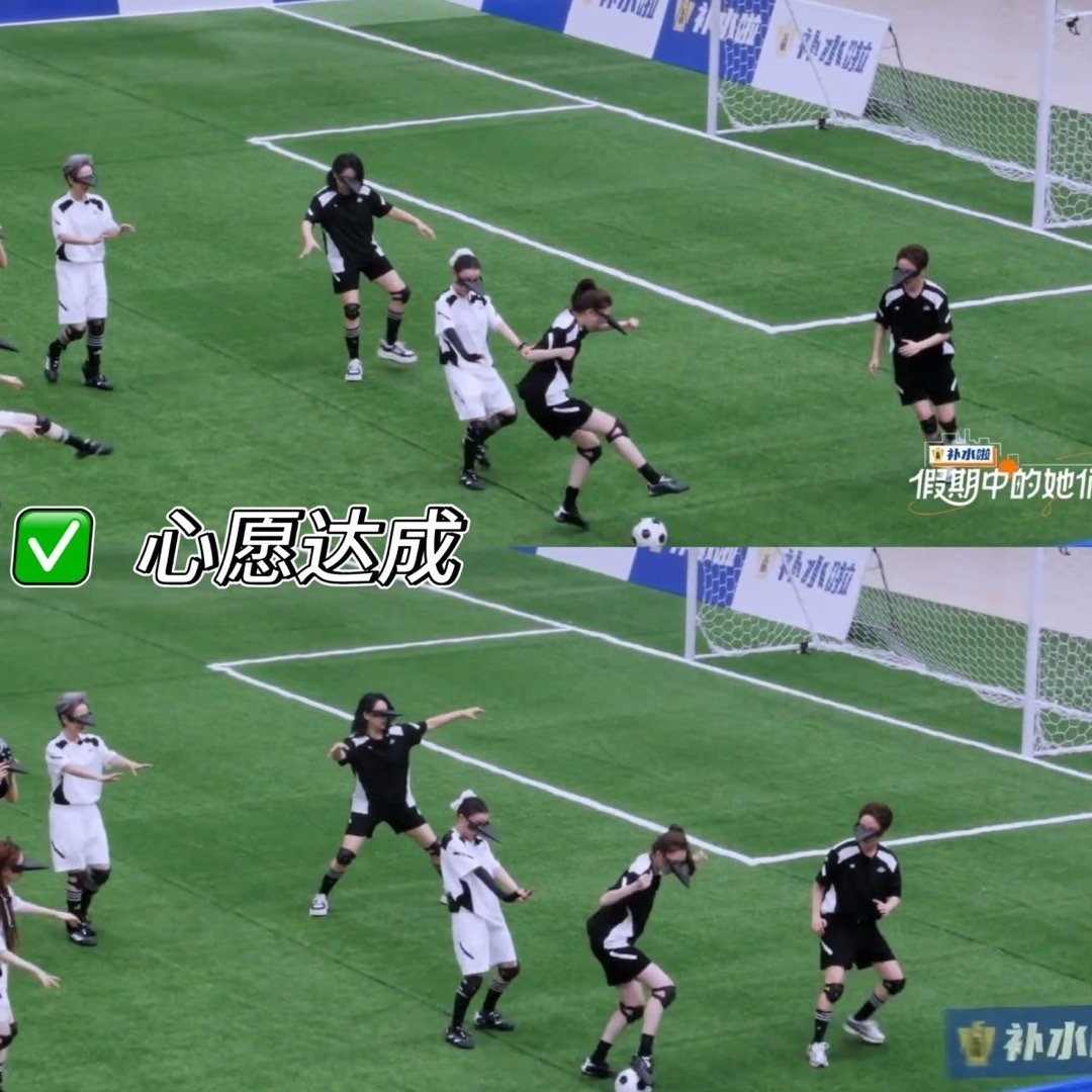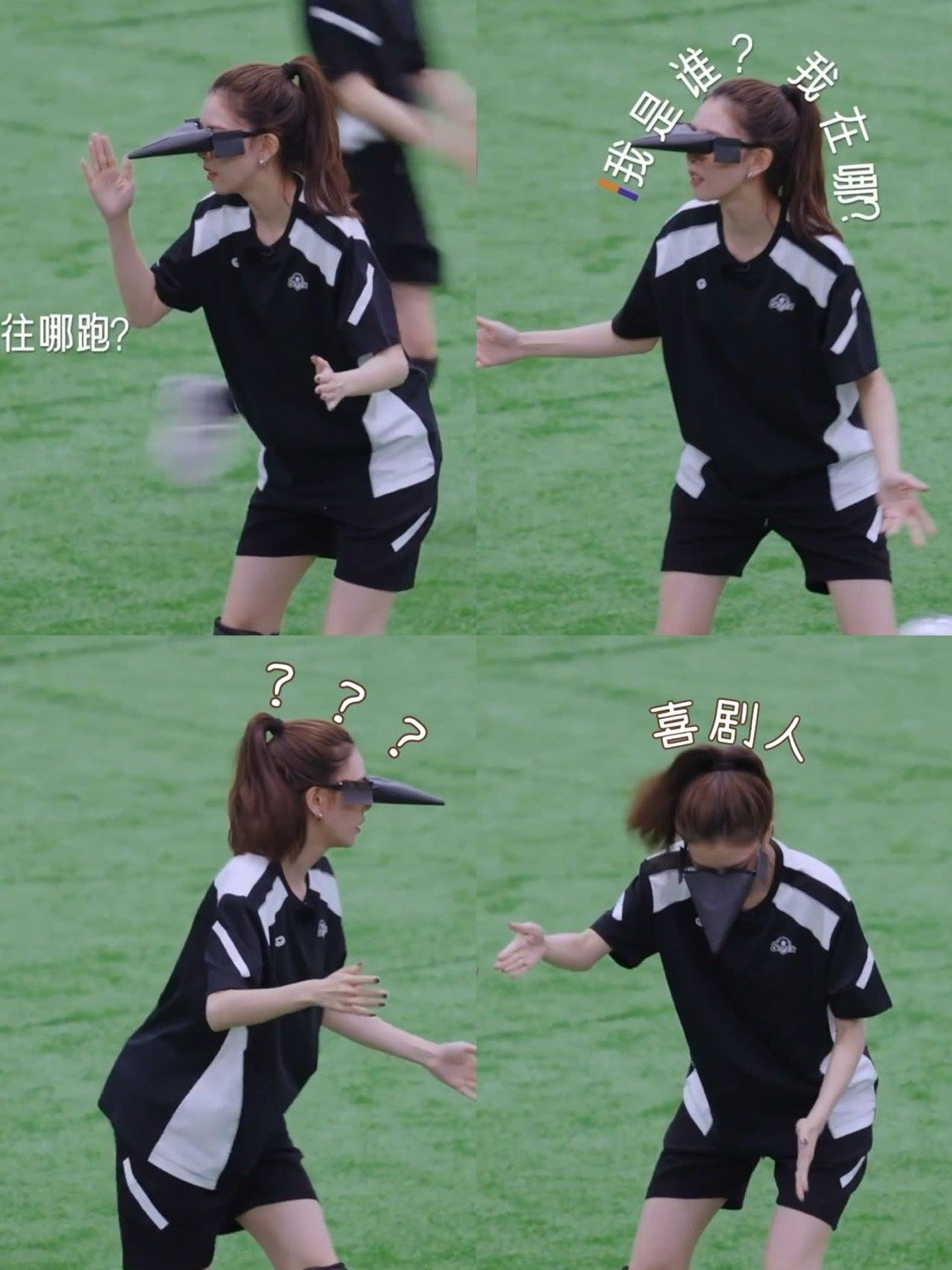 宋妍霏这么长的腿也踢不到球宋妍霏蒙眼踢球笑不活了!明明腿长优势满满,却在球场上