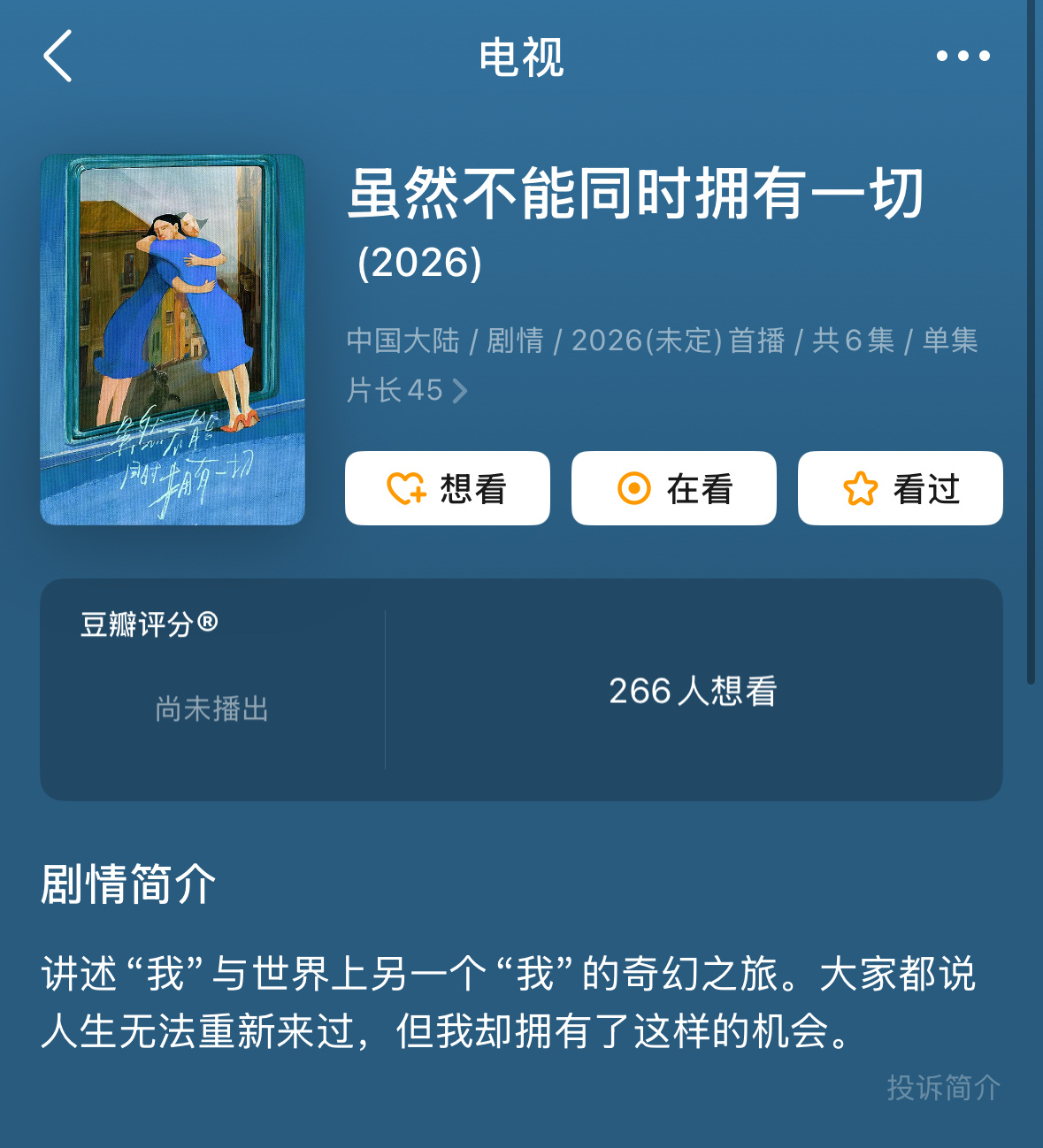 🥝迷你剧《虽然不能同时拥有一切》开通官博!