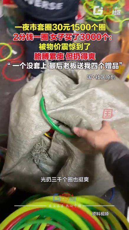 “这就是东北的物价吗?”黑龙江齐齐哈尔,一女子假期来旅游,逛夜市时,突然看到有套圈的地摊,地上密密麻麻全都是圈,上前一问才知道,30元1500个,于是大手一挥,直接买了3000个圈, 可即便如此,她都没有套到东西,就连老板都看不下去了 马女士介绍,当天逛夜市时,看到地上密密麻麻铺满了藤圈,像秋天落叶似的堆叠着。摊主见她好奇,抬头说了价格:三十块钱一千五百个圈 这价格让她愣了一下。在别处旅游时,十块钱买二十个圈都算便宜,这里给的量简直像批发。她心想,就算闭着眼睛乱扔,总该能中几个吧,于是就买了3000个圈,可当两个沉甸甸的编织袋提到她脚边时,她才意识到问题所在。这三千个圈,得扔到什么时候? 起初她还认真瞄准,蹲下身找角度,后来发现手臂开始发酸,干脆站直了随手抛。圈像雨点般落下,撞在玩具车上弹开,擦着陶瓷存钱罐边缘滚远,在毛绒玩具堆里打转就是不肯停住。路过的人纷纷驻足,看着这个被圈包围的女子,奖品却一个都没套中 扔到后来胳膊都抬不起来了,最后准备离开时,摊主却突然叫住了她,往她怀里塞了四个小礼品,或许这真是看不下去了 有网友说:这只能说明套中率多低,是设计的问题,礼物放在那么窄的地方上,套上也掉下来了 说实话,夜市的套圈摊,摆的都是心理战。你看着奖品多、圈多,觉得概率肯定不低,可那距离、圈的弹性、物品大小,样样都是讲究。你要真想靠运气赢,几乎没戏。摊主卖的不是圈,是娱乐的氛围和那点希望 所以说,这类游戏也没必要太认真。夜市的乐趣不在输赢,而在那股烟火气。能笑着掏钱玩两下、被坑点也能乐呵,那就值了,更何况这个价格,真说不上亏 真要套奖品,不如直接买个回家,还省得累出一身汗。能笑着走开的,才是玩明白的人