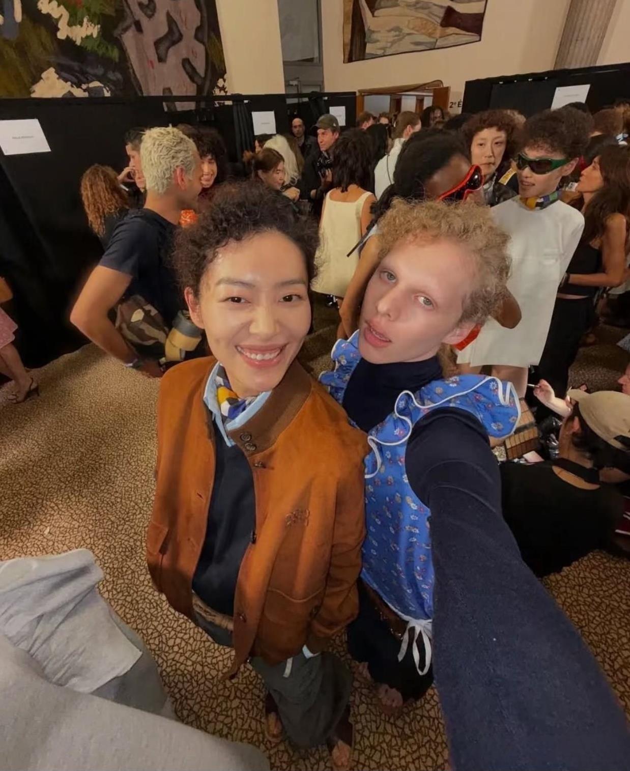 大表姐刘雯这一头小卷发还挺好玩儿的 miumiu秀就刘雯这一身最好看 #刘雯走秀