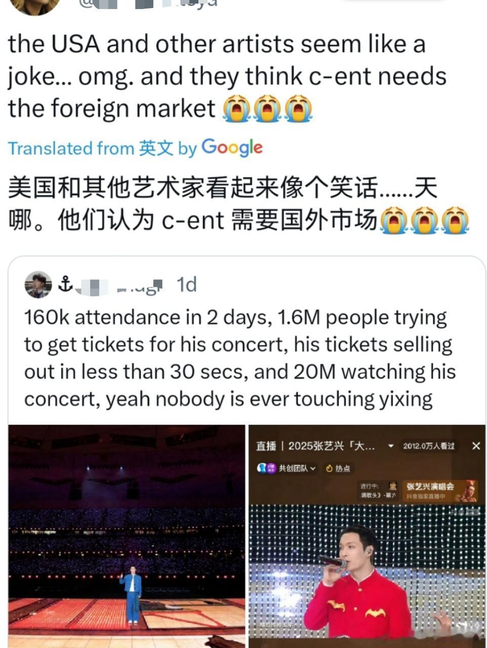张艺兴鸟巢演唱会海内外大爆出圈‼️