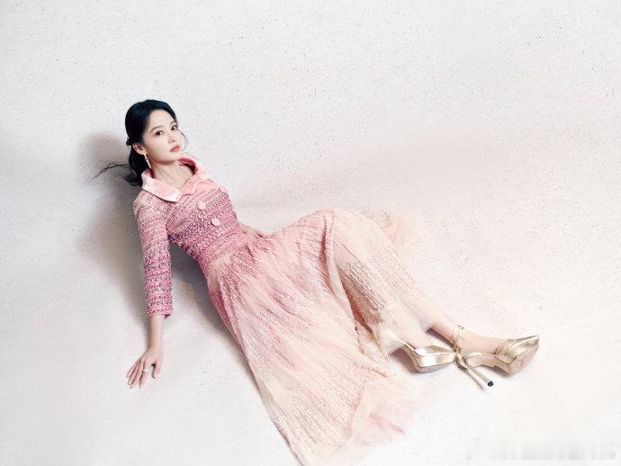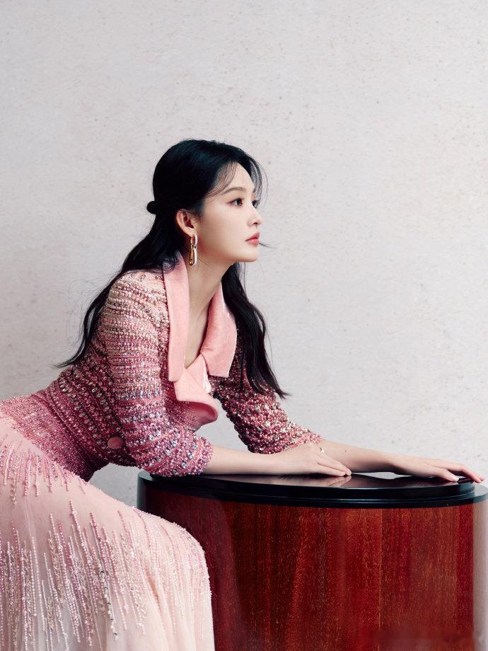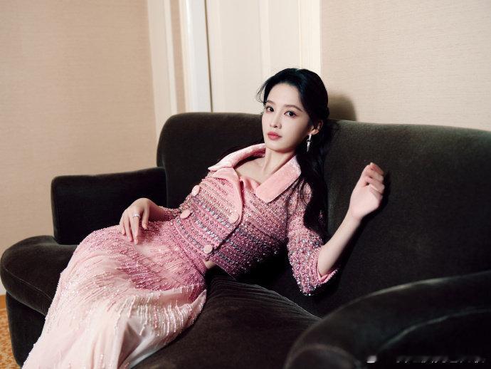 李沁粉色钉珠高定套装,李沁衣服一言难尽全靠脸撑着,谁懂这个李沁宜古宜今的神颜呢,下次的look请把姐姐的优势全部展现出来呀~ 李沁造型师