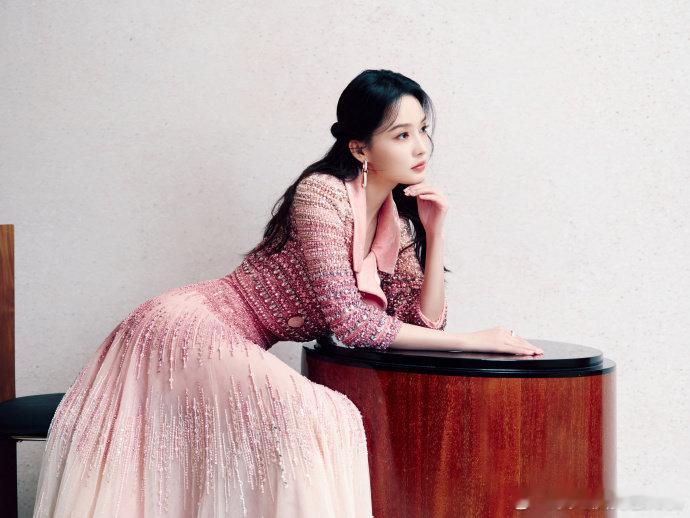 李沁衣服一言难尽全靠脸撑着 李沁粉色钉珠高定套装
