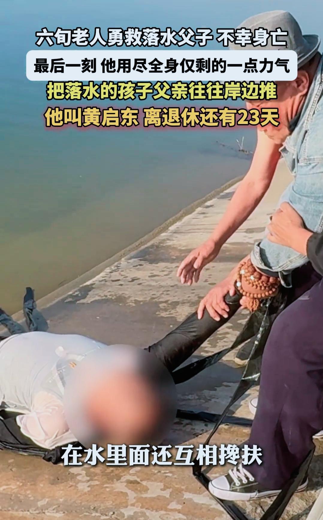 23天后的“结局”, 时间定格在那个冰冷的下午, 再也等不到老伴在耳边絮絮叨叨! 就在10月2号下午,60岁的老党员不顾一切勇敢跳进冰冷的河水中救下落水父子俩,而自己的生命永远的定格在这一刻! 有时候想,好人为什么没有好报,偏偏连23天都等不到? 他还没有看到孙子孙女呢,还没有和老伴手拉手回忆年轻时的场景呢! 看到老伴拿着手机好像是在求救,为什么没有人去救他呢,为什么他就那么傻救别人呢,我该怎么办呢,当时那种无助,谁又能懂呢! 善良的人就该是这样的结局吗?6旬老人勇救落水父子