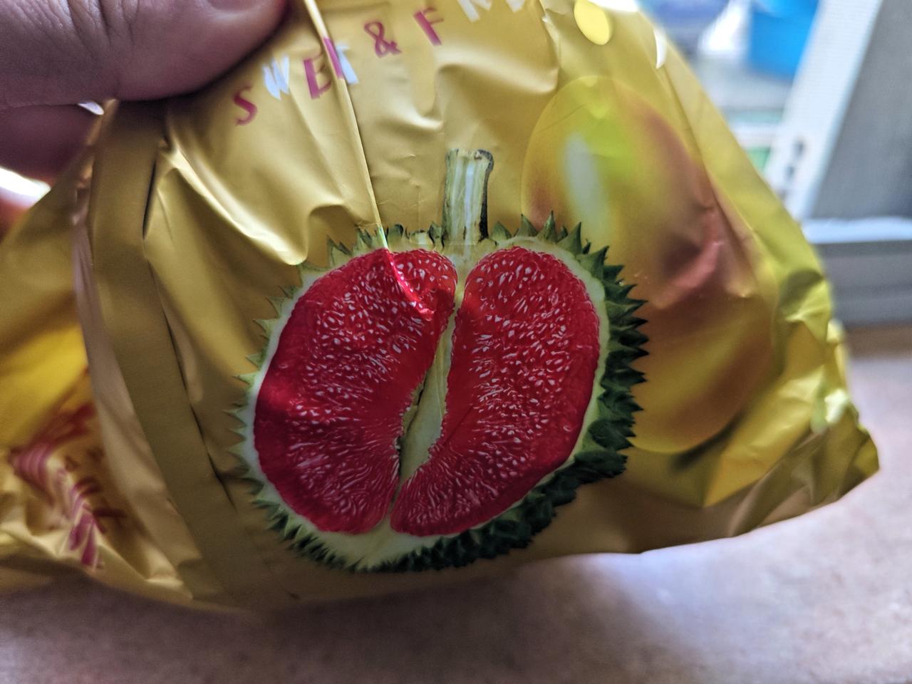 相信这段时间“中招”的人不少,买到的除了大呼上当之外,也佩服此人的设计鬼才。 回到家,从不吃了榴莲的家里人,拿了几个“榴莲”回来。我拆开包装,发现这堆榴莲,实际上是挂羊头卖狗肉的柚子!离了大谱! 家里从不吃榴莲,一方面是臭,另一方面是贵,主要是臭,所以,当看到一堆金色榴莲包装的物品放在客厅,甚是疑惑。直到几天后,发现这堆榴莲没有人动,我才手欠打开来看一下。 结果,竟是水果跟我们玩起了文字游戏。所谓的“榴莲王”,原来看漏了1个字,“榴莲王柚”! 另一面的包装,也是惊叹包装设计这个鬼才,“猫山王柚”!如果不摸,不拆包装,绝对被这个“羊头”给骗了。 可想而知,事出有因,必有有妖!事实也如此,包装漂亮,柚子难吃,苦又涩。 唯一幸运的是,好在没用这货来“拜祖先”,不然板子都会跳起!榴莲猫腻 榴莲王柚 猫山王柚 水果刺客 广州身边事 柚子 广州