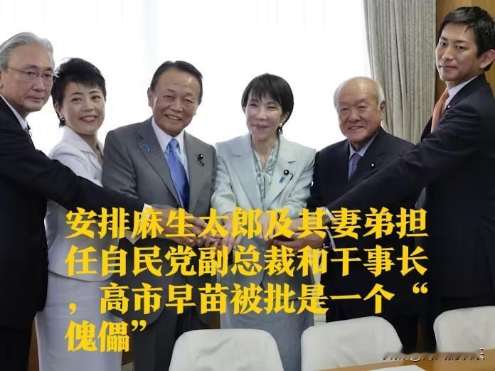 标题: 日媒批高市早苗人事任命“傀儡化” 自民党高层被指“麻生家亲戚俱乐部” 据媒体报道【环球网东京10月9日电】日本自民党新任总裁高市早苗7日公布党内高层人事安排,任命前首相麻生太郎为副总裁、其妻弟铃木俊一为干事长,引发日本舆论哗然。多家媒体批评此举暴露高市早苗对麻生派系的绝对依赖,甚至讽刺其内阁为“第二次麻生政权”。 据《产经新闻》报道,麻生太郎在总裁选举中通过政治资源操控投票,助高市早苗胜选后,此次人事任命进一步强化其影响力。除铃木俊一外,总务会长有村治子亦属“麻生派”,仅政调会长小林鹰之因政策理念相近获得提拔。立宪民主党本庄知史直言,高市早苗与麻生、铃木的合影宛如“嫁入麻生家的高市女士”,政策改革恐难推进。 东京广播公司(TBS)指出,曾被停职的安倍亲信萩生田光一也获任干事长辅佐,党内匿名议员称“露骨程度堪比麻生政权”。《朝日新闻》则批评该任命背离“全党一致”原则,排挤岸田文雄派系势力。政治评论员武田一显以“上皇听政”形容麻生的实际控制权,暗示高市早苗或沦为名义领袖。 分析认为,此次人事布局可能加剧自民党内部分裂,而高市早苗的执政权威已遭公开质疑。