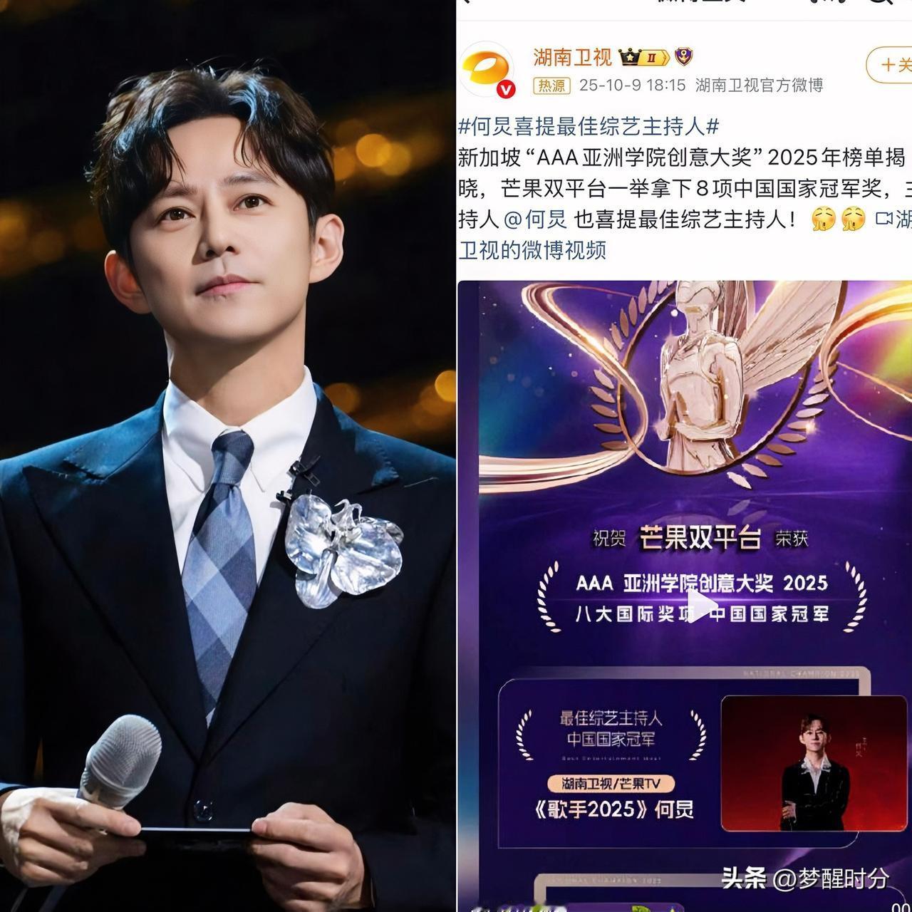 难怪中秋晚会没有何炅 不是因为他主持能力不行,也不是因为他过气了,而是因为他有更重要的事要做! 今天,何炅在新加坡AAA亚洲学院创意大奖喜提最佳综艺主持人,凭借《歌手》《声生不息》《你好,星期六》等多个节目获奖。 据说这个奖含金量不一般,是亚太区最大规模的国际奖项,覆盖17个国家 而何炅从业30年,从老师转行到主持人,1995年主持《大风车》入行,如今已经成为内娱主持界的定海神针,的确是一个传奇人物的故事 能把主持人能做到这份上的,他真的算是独一份了。 大家觉得呢?