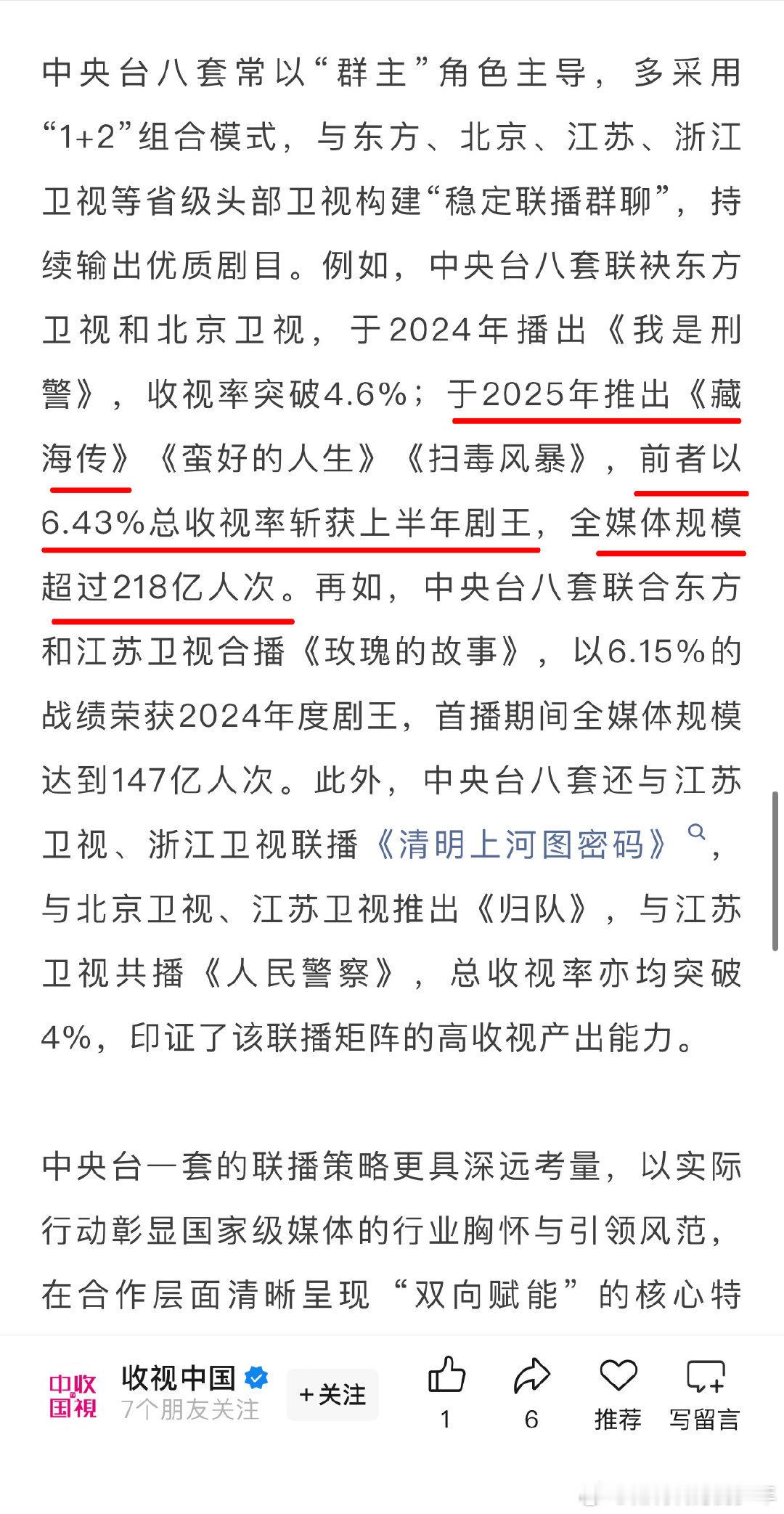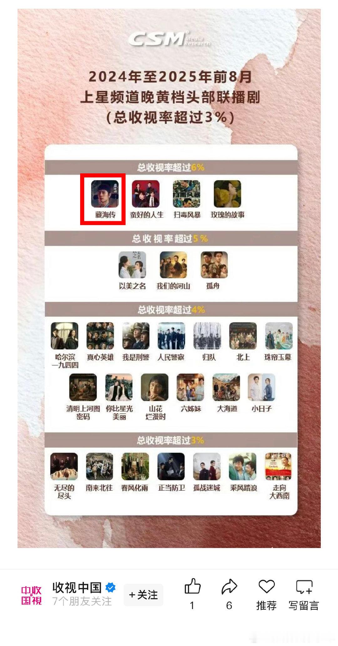 2025年谁在扛剧谁在摸鱼据收视中国消息,2025年推出《藏海传》以6.43%总收视率斩获【上半年剧王】,全媒体规模超过218亿人次。