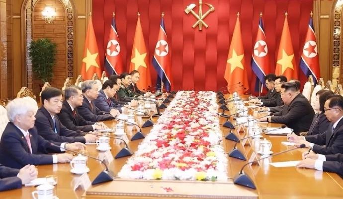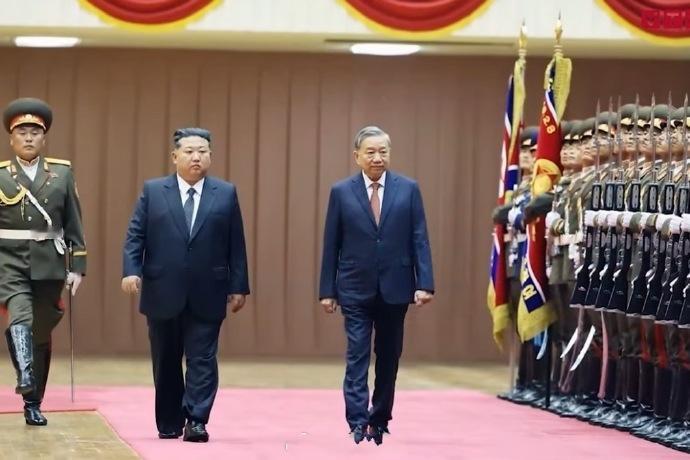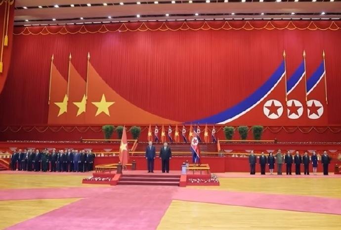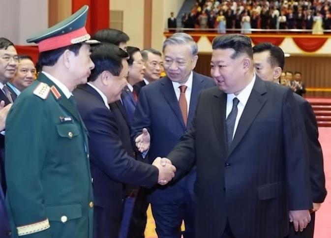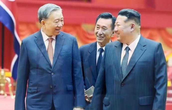 10月9日,苏林抵达平壤了,受到金将军高规格的接待! 从曝光的画面我们可以看出,苏林已经去朝鲜访问了,据悉这次苏林来平壤,主要是参加朝鲜劳动党建党80周年庆祝活动。当然了苏林的到来也是让金将军非常开心,虽然金将军没有去机场迎接苏林,不过金将军在平壤体育馆主持隆重欢迎仪式。 在迎接现场地面几乎都铺满了红毯,当时的金将军和苏林边走边聊天,一个是年轻的80后,一个是50后,两人年龄虽然相差二十多岁,可是金将军一点也不输苏林。 据悉今年还刚好是朝越建交75周年。记得上次越南领导人来朝鲜还是在2007年。转眼都这么长时间了,看来现在的朝鲜在俄的带领下已经强大起来。