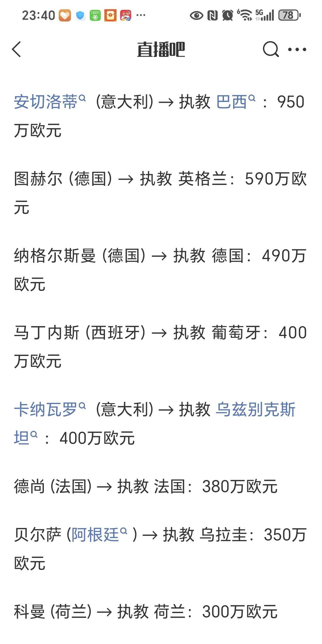 不比不知道,一比吓一跳!有一说一,没有执教过国家队的菜鸟教练年薪400万欧,居然比法国国家队主教练德尚的380万欧、世界杯冠军教头阿根廷主教练斯卡尼洛的230万欧年薪都要高一截。 国家队主教练年薪前几名具体排名如下: 1.巴西国家队主教练安切诺蒂:950万欧 2.英格兰国家队主教练图赫尔:590万欧 3.德国国家队主教练纳格尔斯曼:490万欧 4.乌兹别克斯坦国家队主教练卡纳瓦罗、葡萄牙国家队主教练马丁内斯:400万欧 5.法国国家队主教练德尚:380万欧 6.乌拉圭主教练贝尔萨:350万欧 7.葡萄牙国家队主教练科曼:300万欧 8.世界杯冠军教头阿根廷主教练斯卡尼洛:230万欧 没有想到2024年欧洲杯冠军西班牙国家队主教练路易斯·德拉富恩特没有进前十。 那么问题来了,安切诺蒂这么高的年薪,如果巴西拿不了2026年世界杯冠军,是不是不称职?卡纳瓦罗拿国家队主教练世界第四高薪,脸红不?#足球#