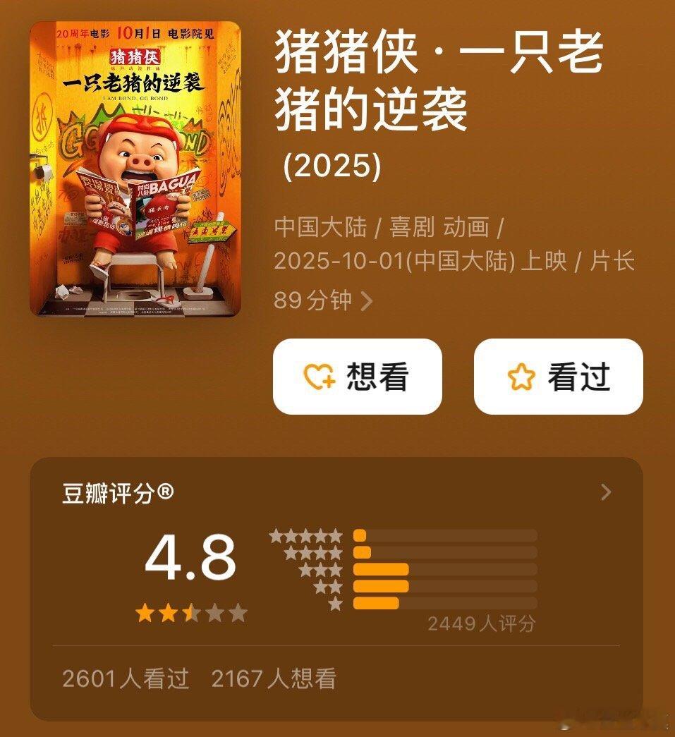 《猪猪侠》分最低,只有4.8。《刺杀小说家2》《浪浪人生》都徘徊在及格线的边缘。