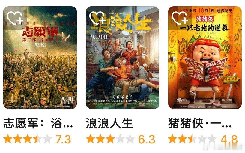 今年的国庆档期,没有一部电影票房破5亿的,也没有一部电影的豆瓣评分破8.0分的。