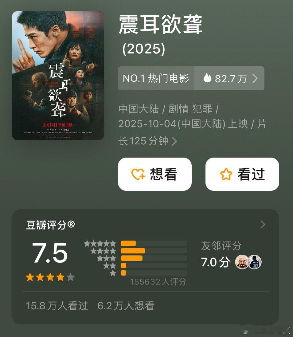 目前分数最高的依旧是《震耳欲聋》的7.5分。